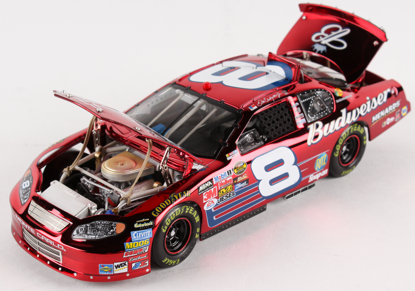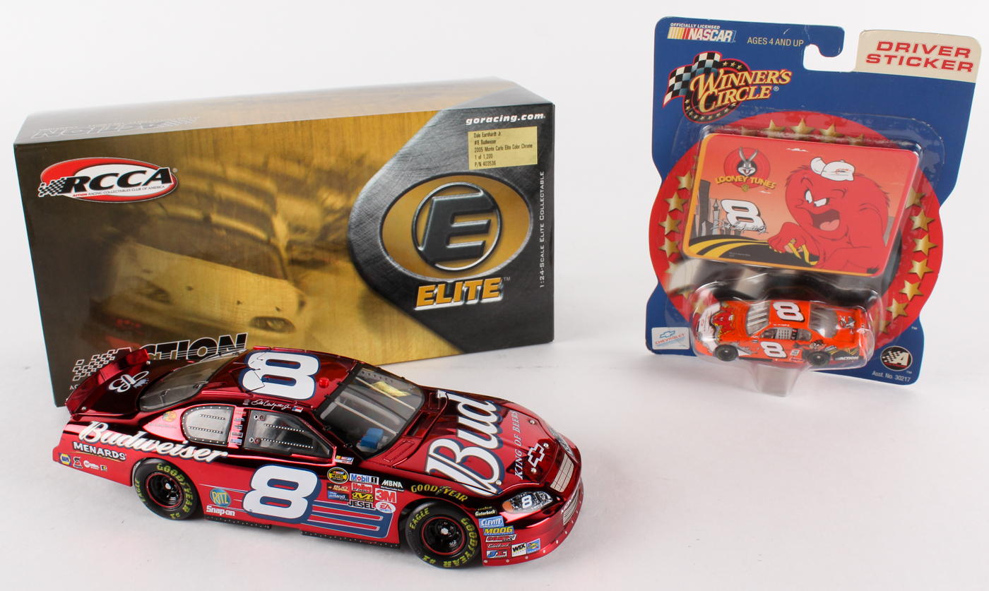 Lot includes (2) 1:24-1:64 Action Premium Die Cast cars with #8 Budweiser 2005 Monte Carlo Elite 'Color Chrome', Limited Edition 1 of 1,200 and #8 Looney Tunes 'Driver-Sticker Series' 2002 Chevrolet. Please note, both cars are unsigned.
