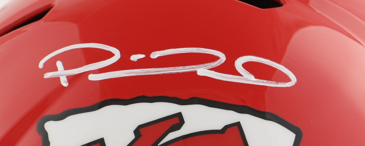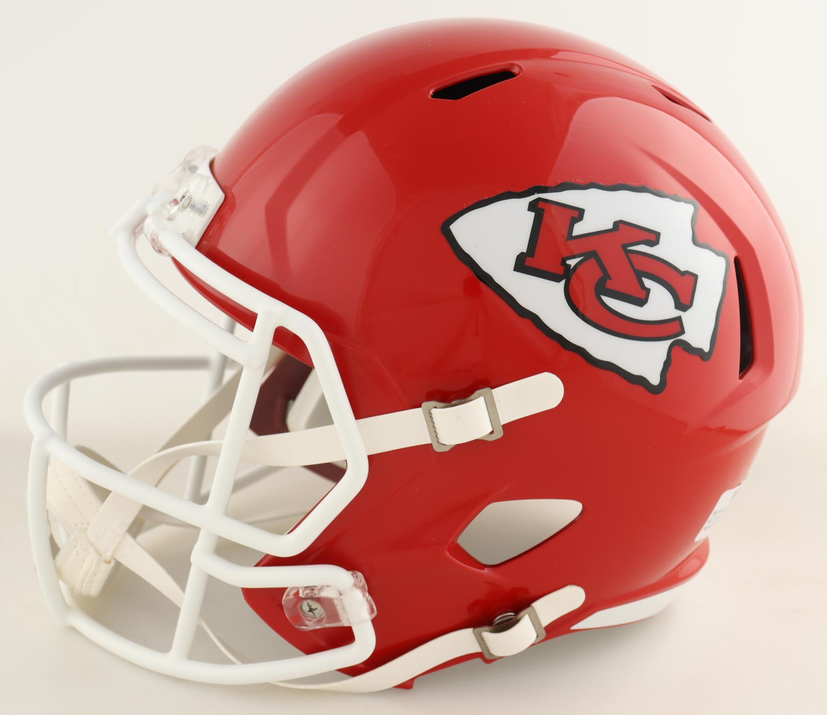 Riddell Kansas City Chiefs full-size speed replica helmet. Hand-signed by Patrick Mahomes.