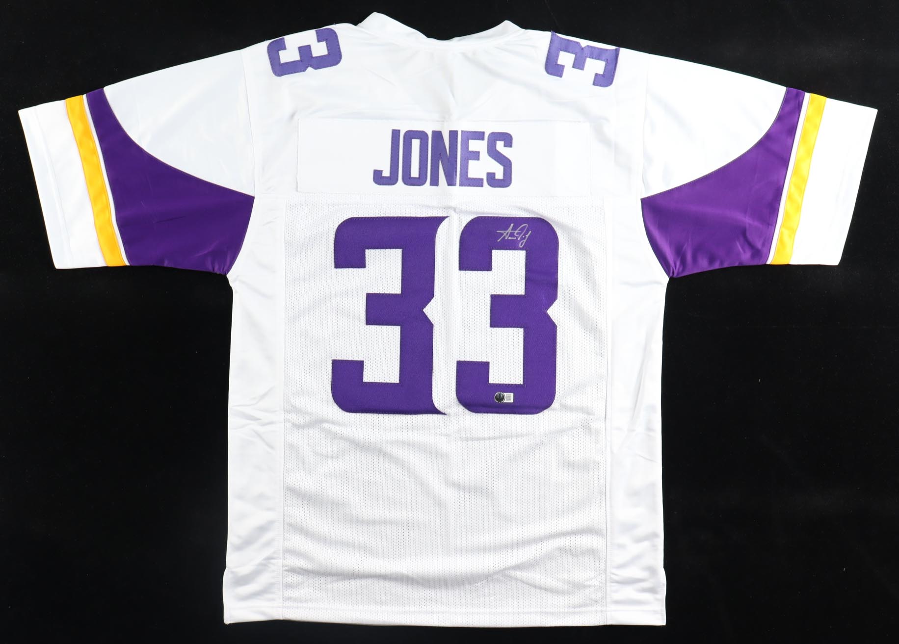 Custom jersey. Everything is sewn on, size XL. Hand-signed by Aaron Jones.