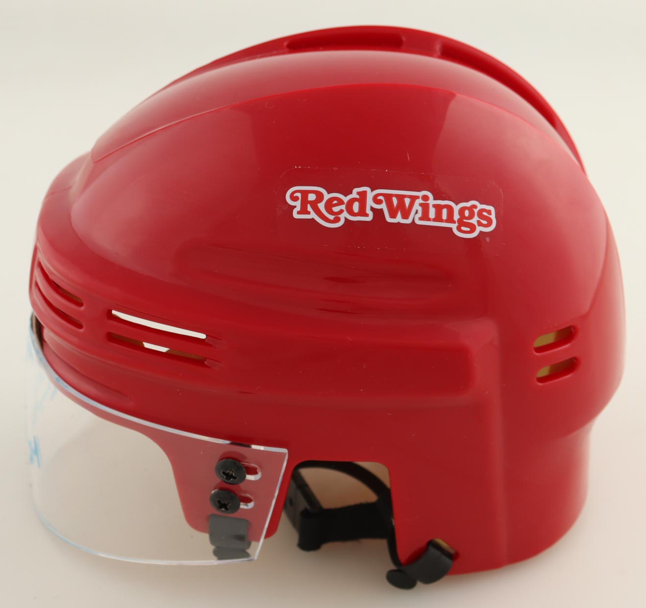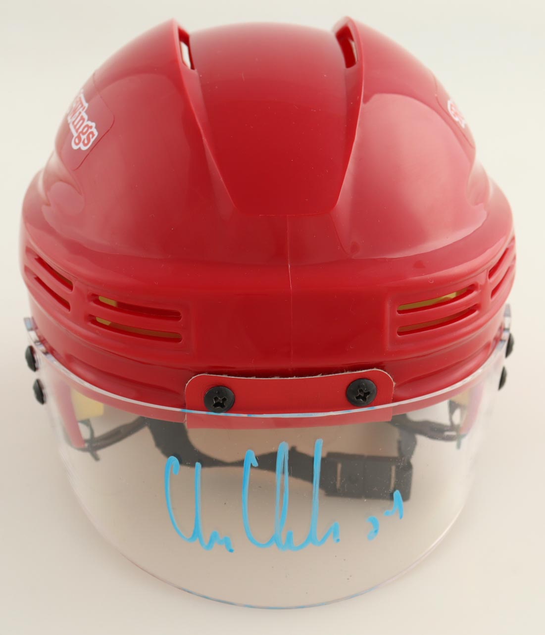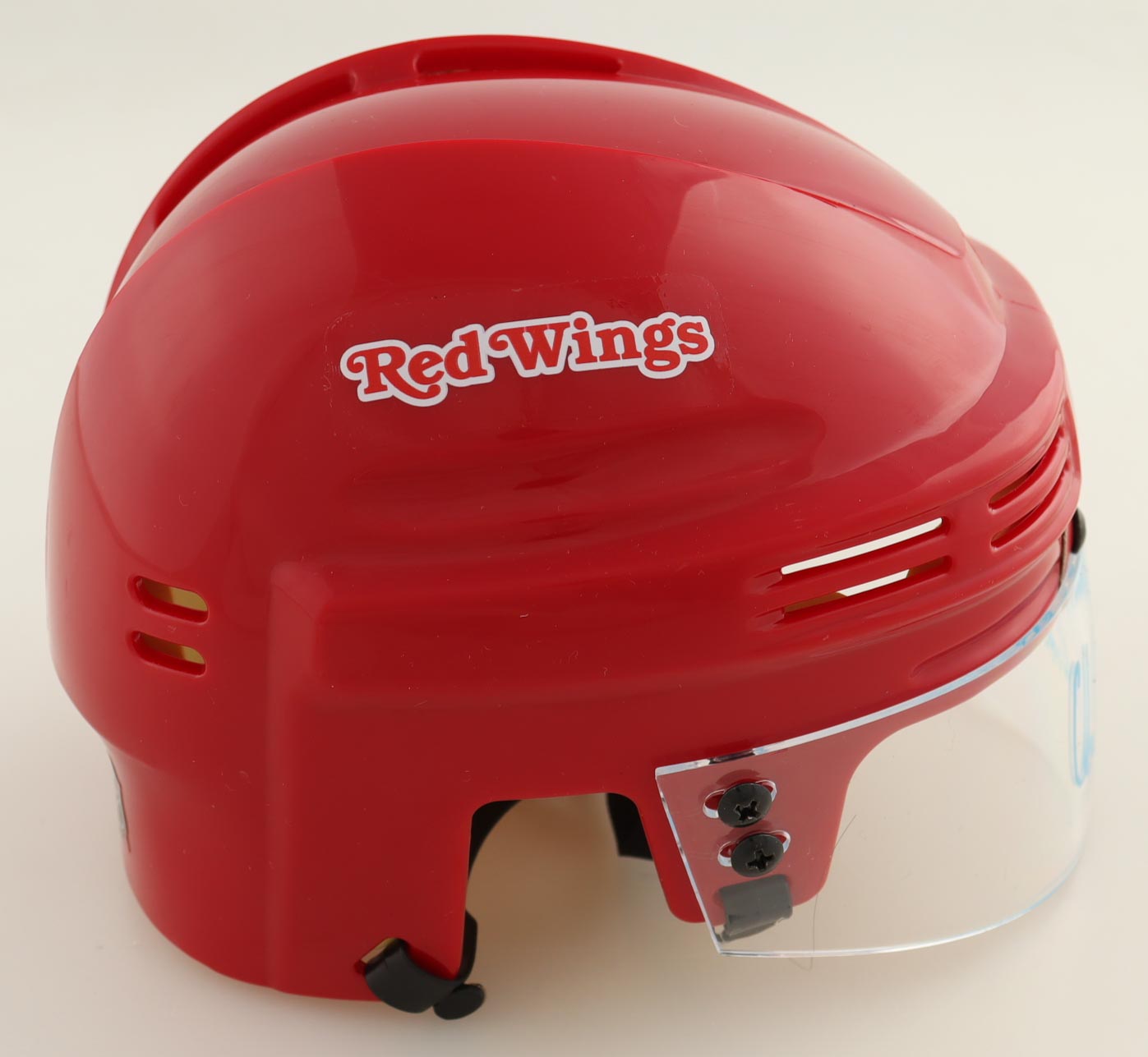 Detroit Red Wings mini helmet has been hand-signed on the visor by Chris Chelios (HOF).