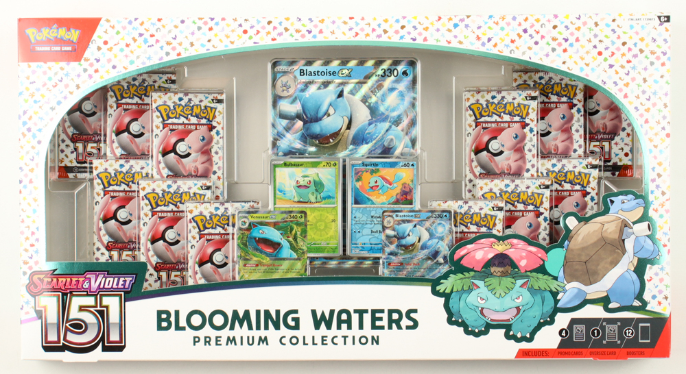 2025 Pokemon TCG Scarlet & Violet 151: Blooming Waters Premium Collection with (12) Booster Packs