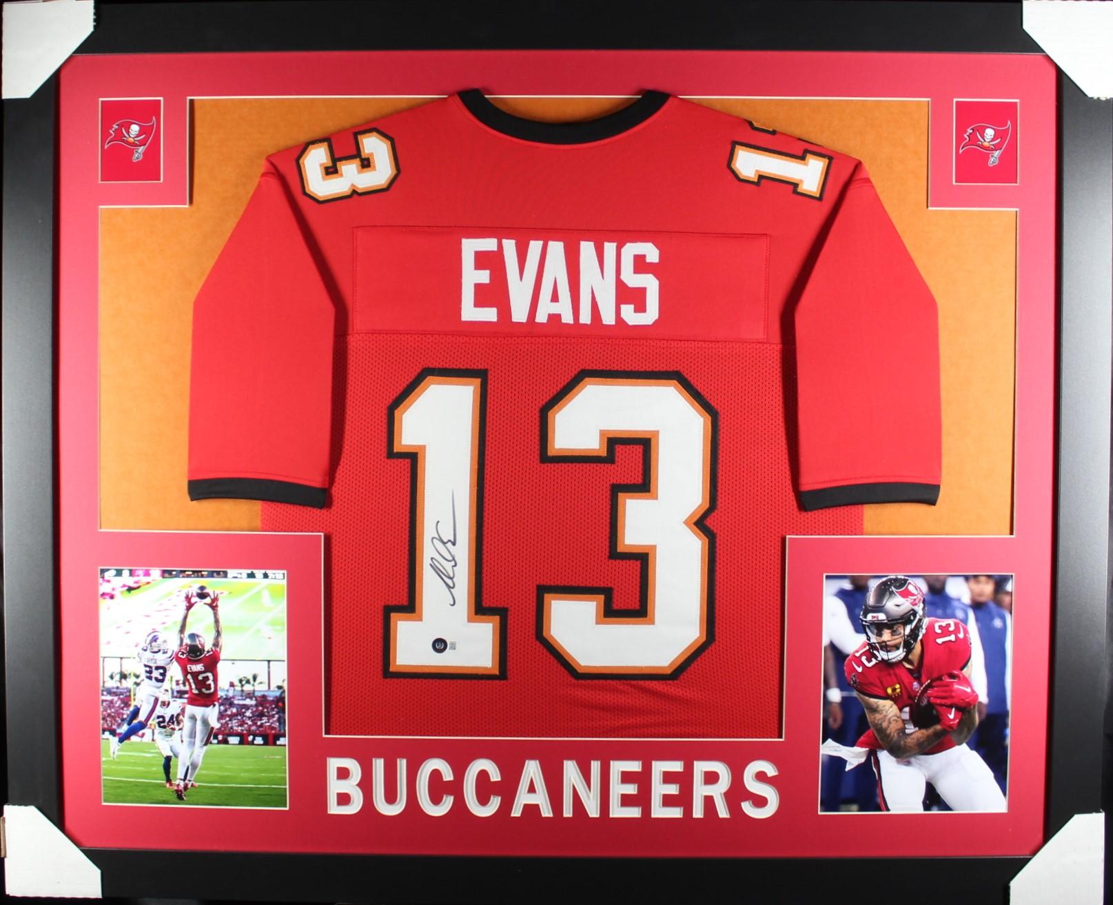 Custom frame measures approximately 35" x 43" in size and features a jersey that has been hand-signed by Mike Evans.