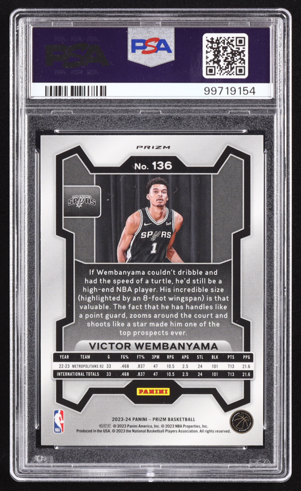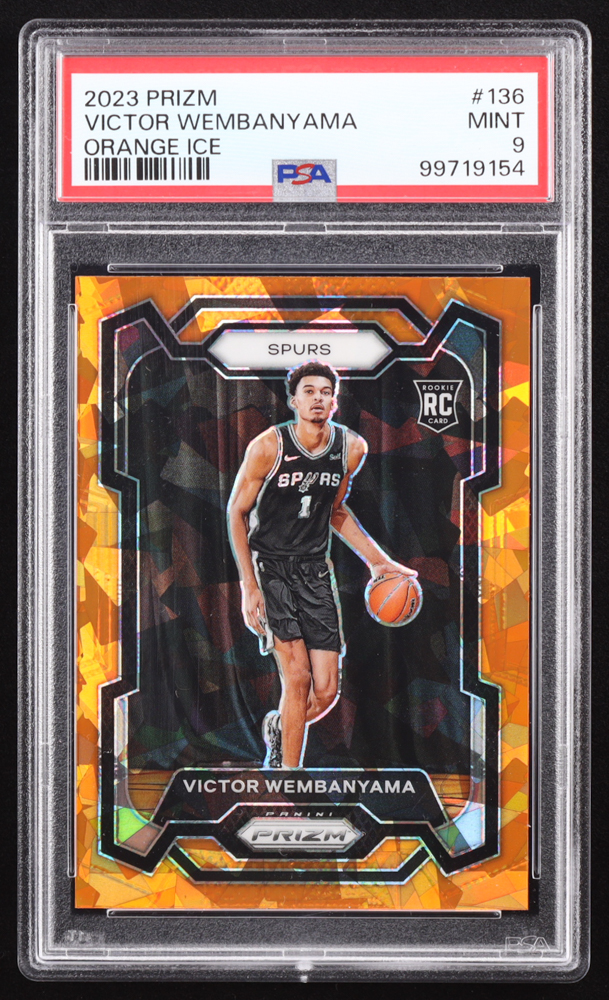 Victor Wembanyama 2023-24 Panini Prizm Prizms Orange Ice #136 RC (PSA 9)