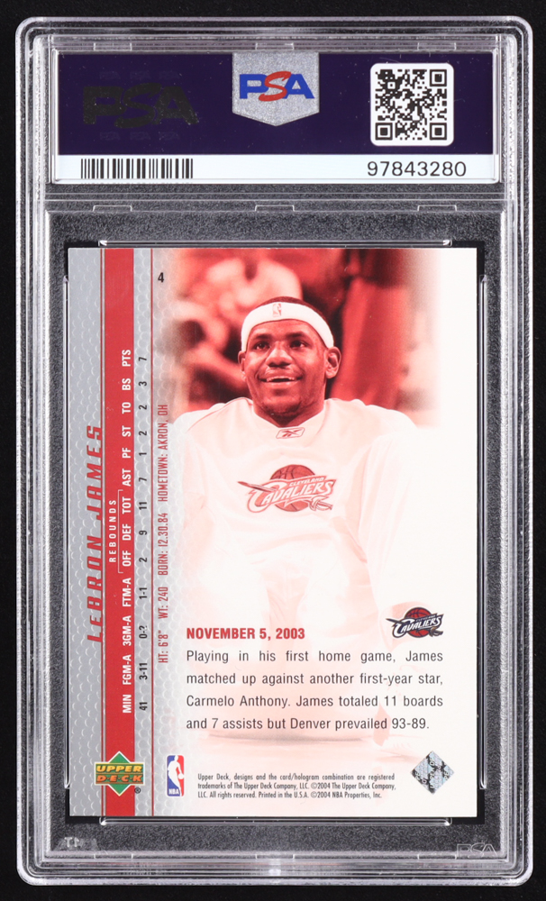 LeBron James 2003-04 Upper Deck Phenomenal Beginning LeBron James #4 RC / Loose and Confident (PSA 10)