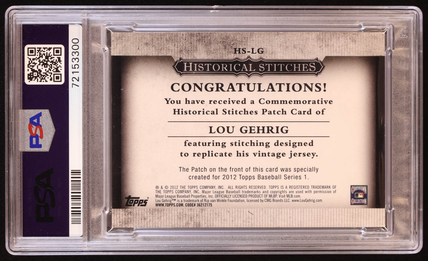Lou Gehrig 2012 Topps Historical Stitches #LG (PSA 5)