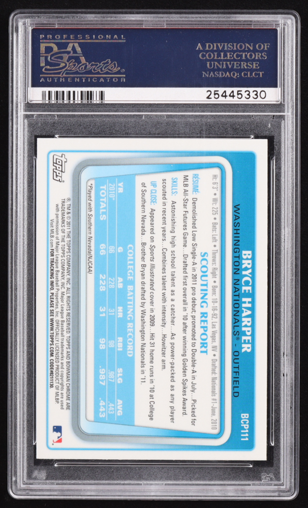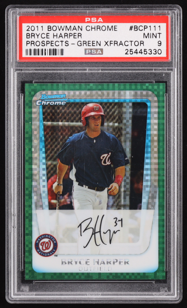Bryce Harper 2011 Bowman Chrome Prospects Green X-Fractors #BCP111 RC (PSA 9)