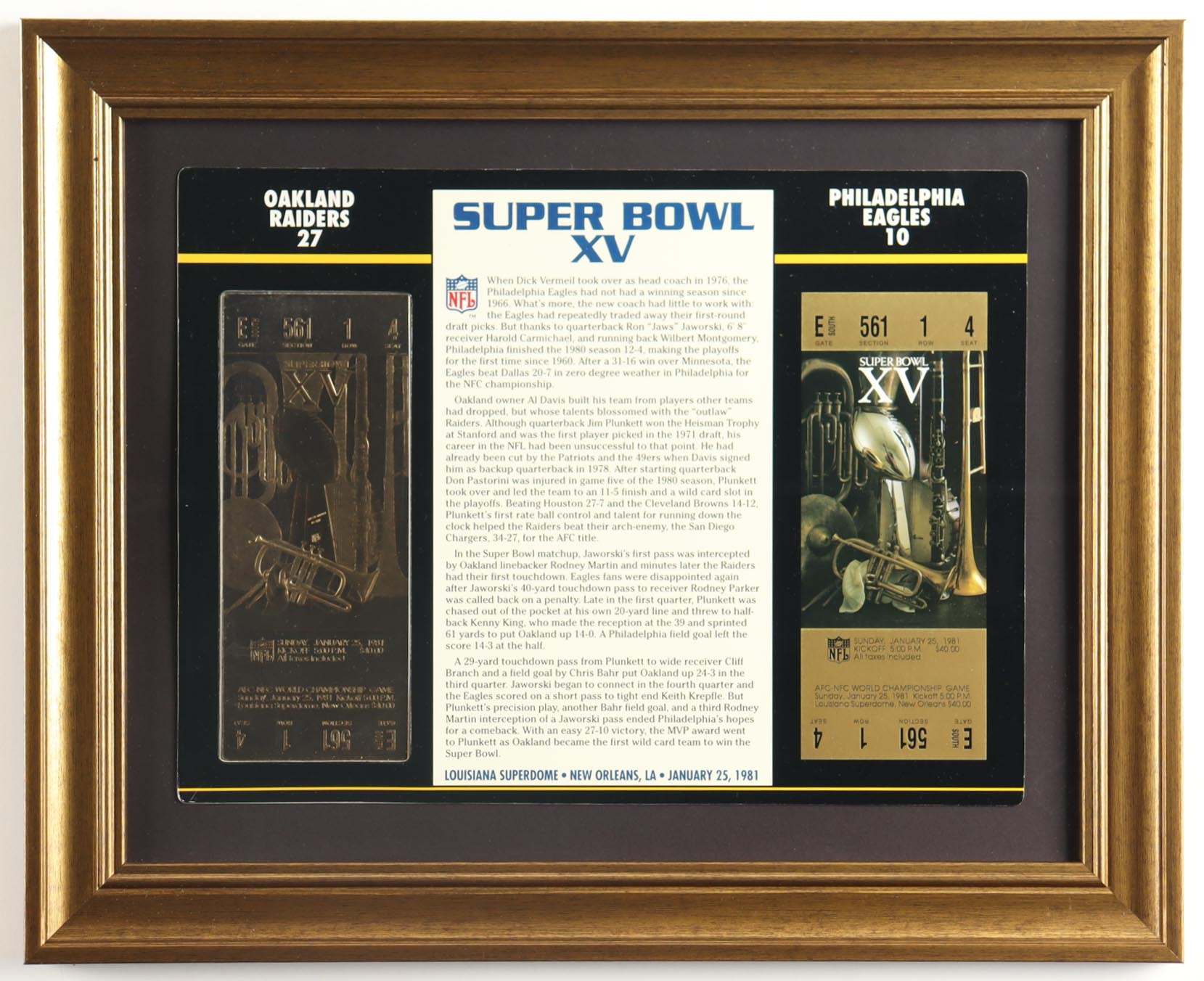 1981 Super Bowl XV Commemorative Card with 22KT Gold Ticket Custom Framed Display