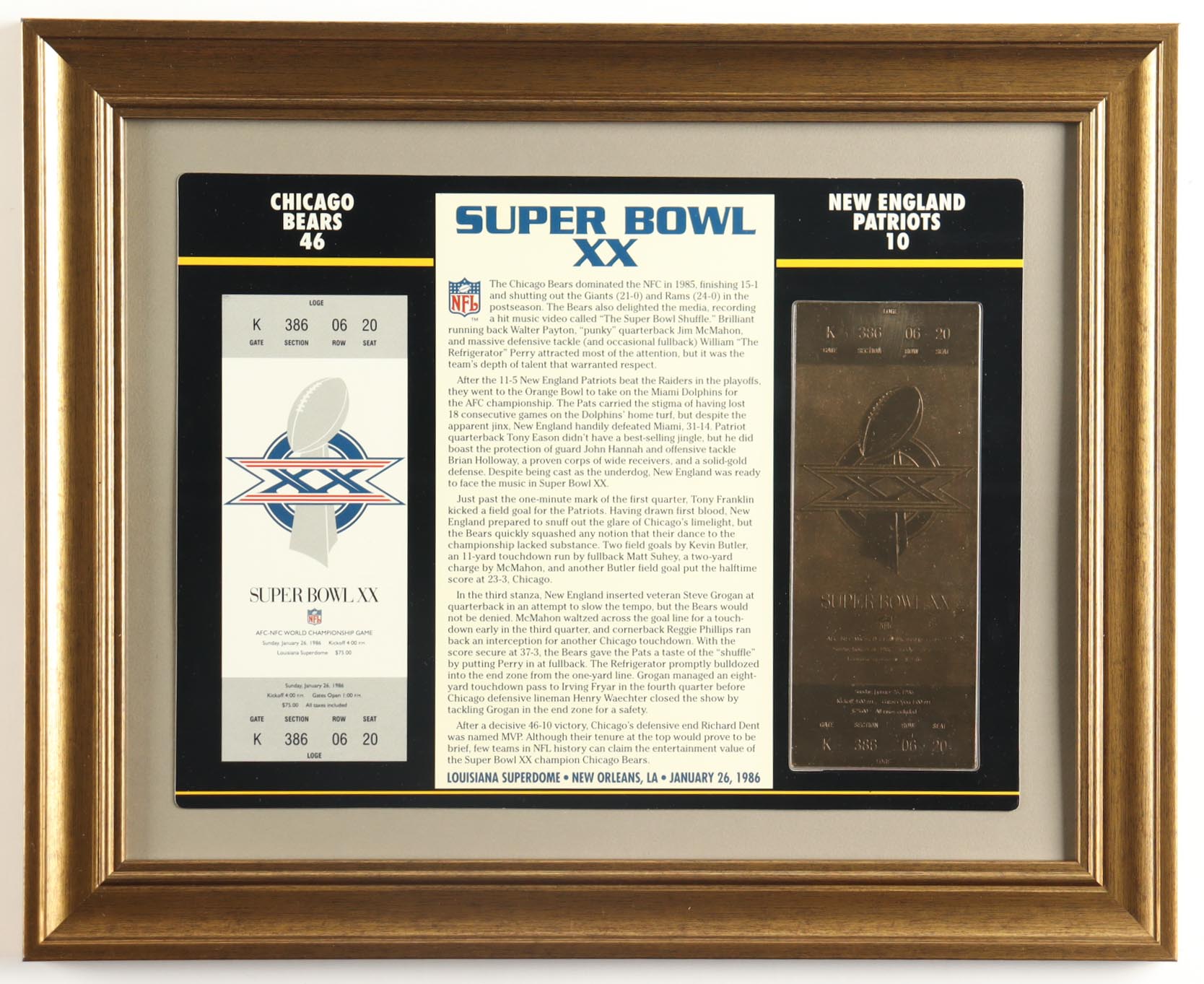 Super Bowl XX Commemorative Custom Framed Score Card Display with 23KT Gold Ticket