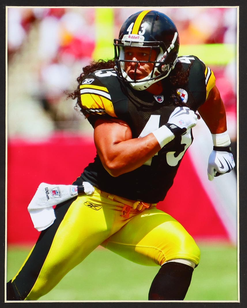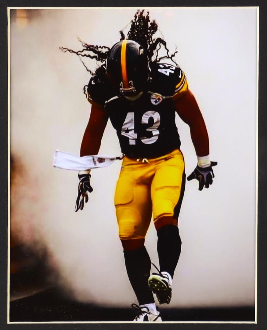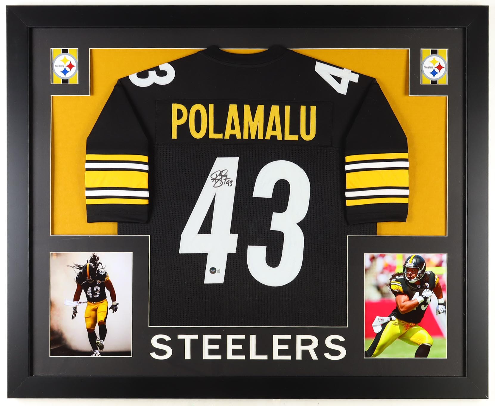 Custom frame measures approximately 35" x 44" in size. Features a jersey that has been hand-signed by Troy Polamalu (HOF).