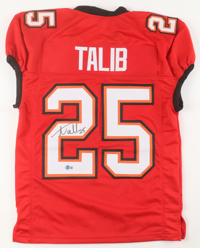 Custom jersey with everything sewn on, size XL. Hand-signed by Aqib Talib.