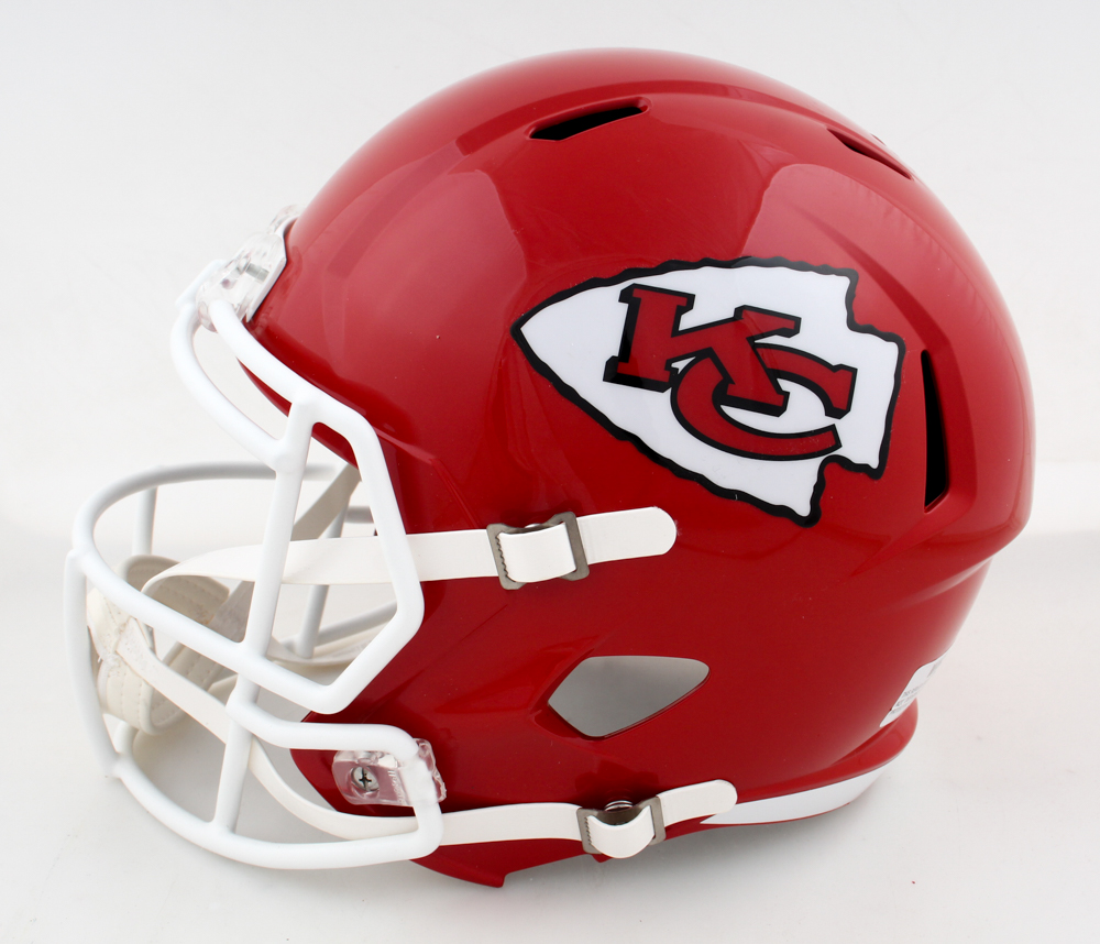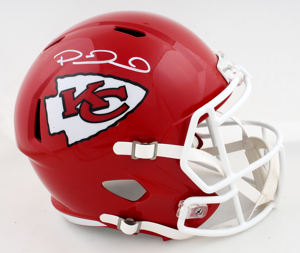 Riddell Kansas City Chiefs full-size speed replica helmet. Hand-signed by Patrick Mahomes.