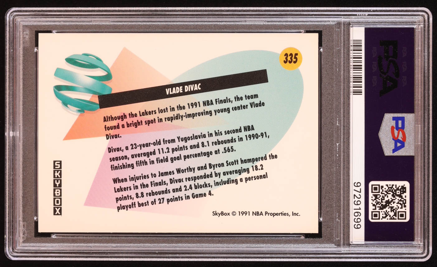 Vlade Divac 1991-92 SkyBox #335 FIN (PSA 8)