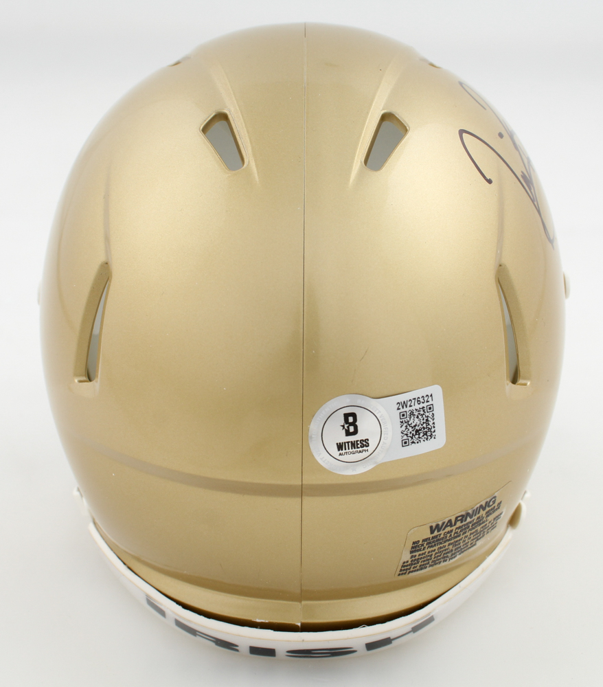 Riddell Notre Dame Fighting Irish Speed Mini Helmet has been hand-signed and inscribed by Tim Brown (HOF).
