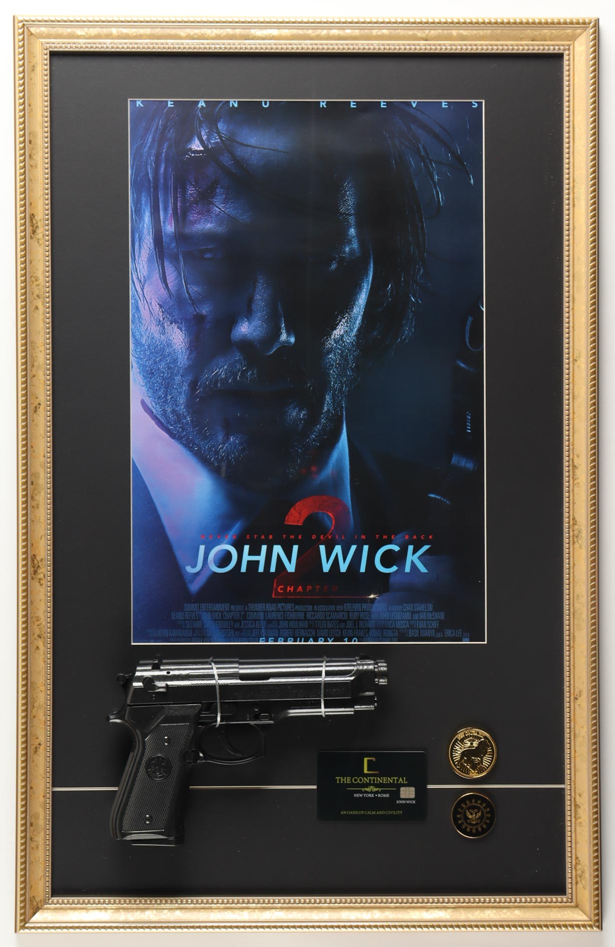 "John Wick: Chapter 2" Custom Framed Movie Poster Display with Replica Prop Pistol, (2) Replica Prop Coins & Continental Key Card