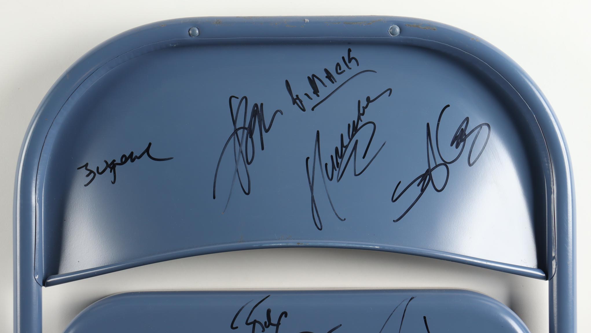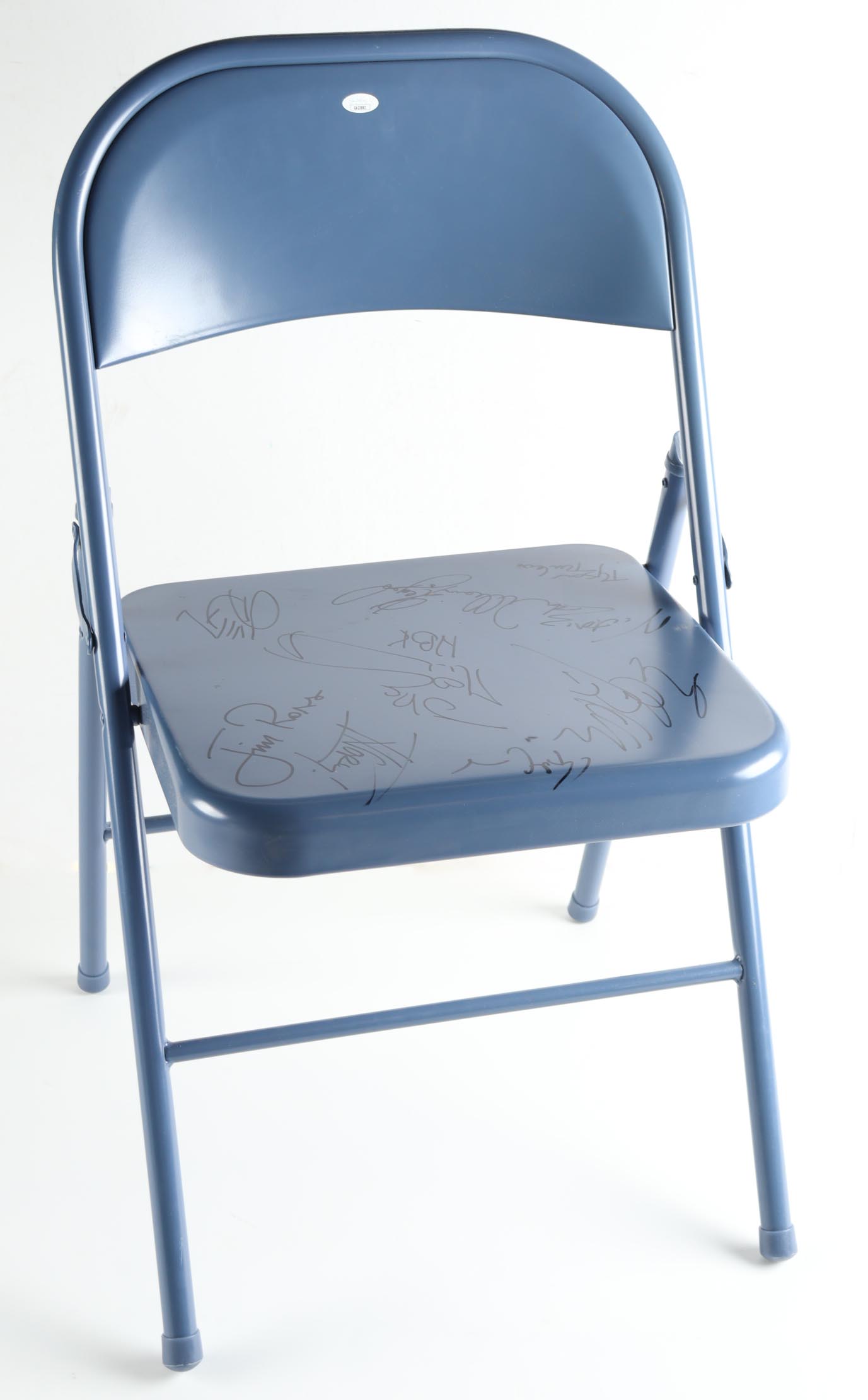 Metal Folding Chair has been hand-signed by Shawn Michaels, Tyson Tomko, William Regal, The Hurricane, Eugene, Super Crazy, Jim Ross, Victoria, Ivory and (6) other unknown signers.