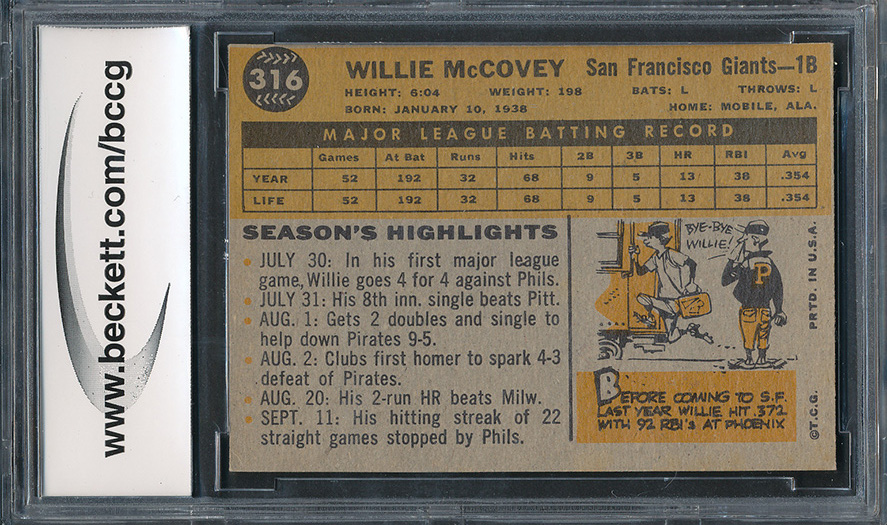 1960 Topps #316 Willie McCovey ASR RC (BCCG 9)