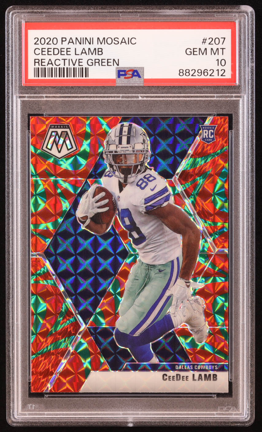CeeDee Lamb 2020 Panini Mosaic Mosaic Reactive Green #207 RC (PSA 10)