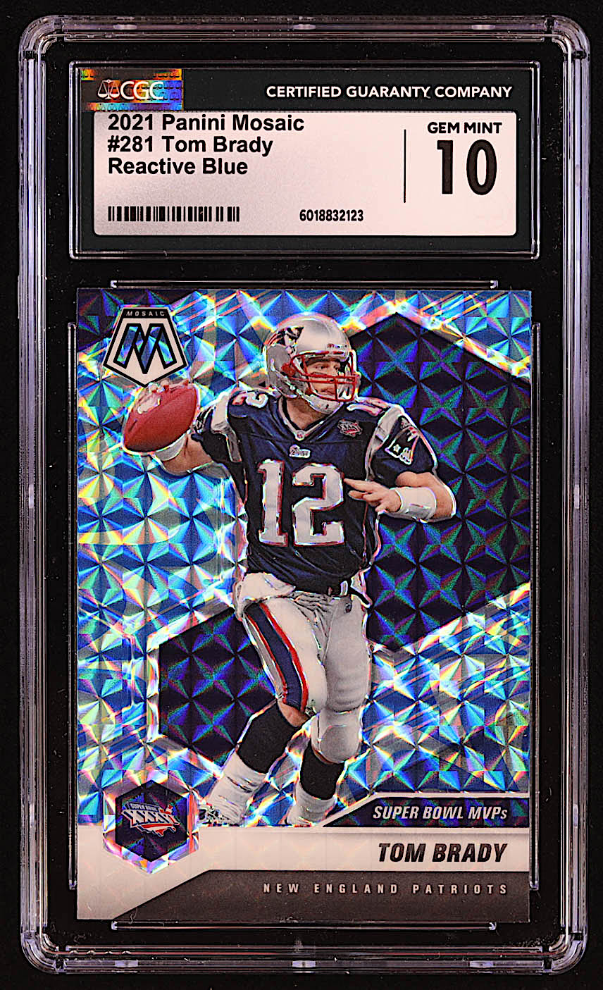 Tom Brady 2021 Panini Mosaic Mosaic Reactive Blue #281 MVP (CGC 10)