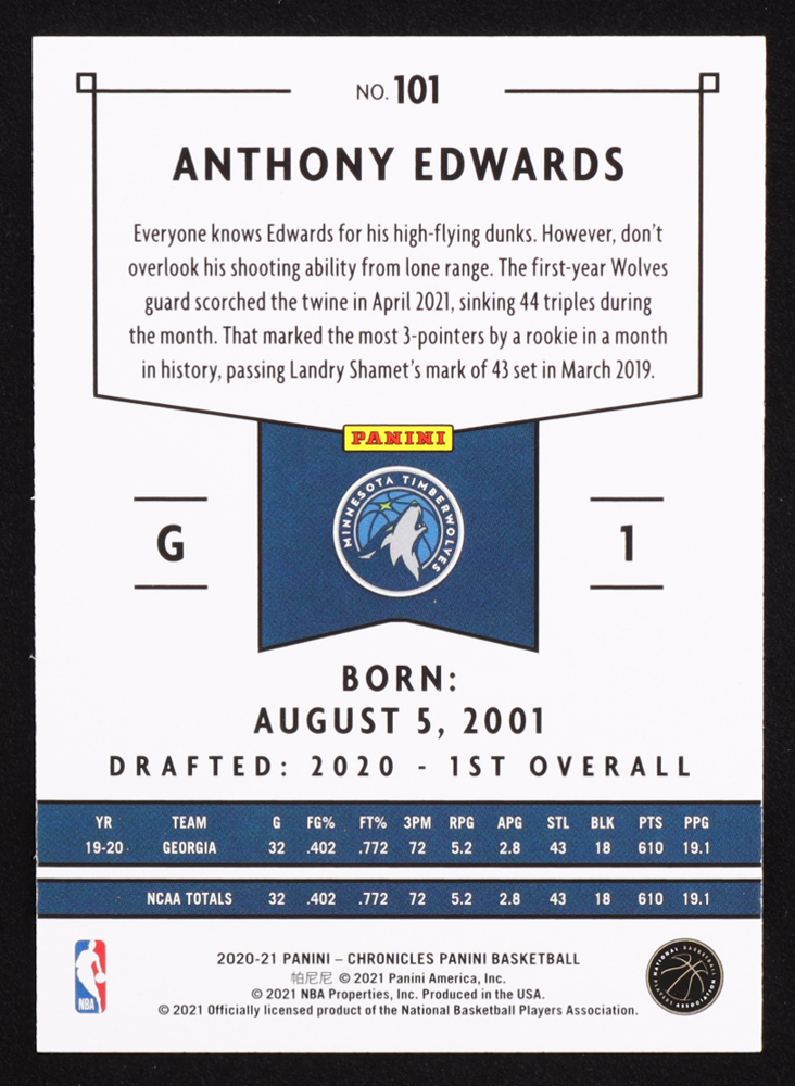 Anthony Edwards 2020-21 Panini Chronicles #101 RC / Panini