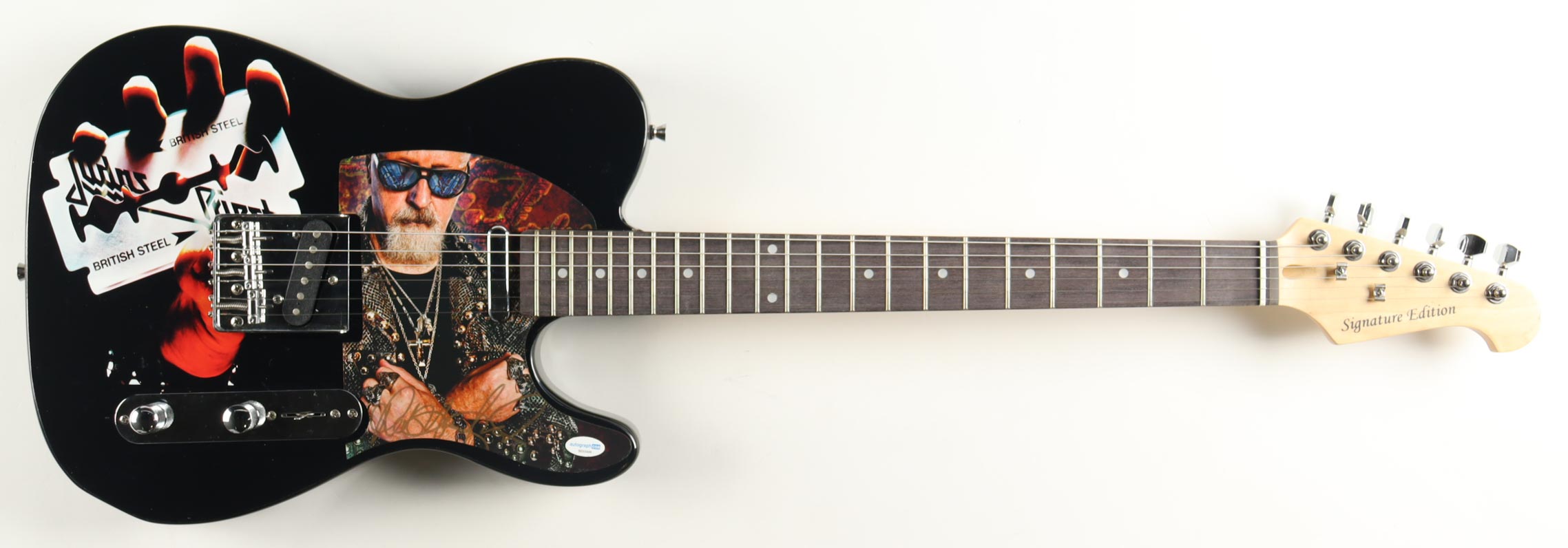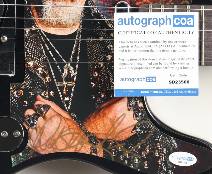 Signature Edition full-size electric guitar measures approximately 39" in length and is hand-signed on the pick guard by Rob Halford. Please see photos for more details regarding the condition of the guitar.