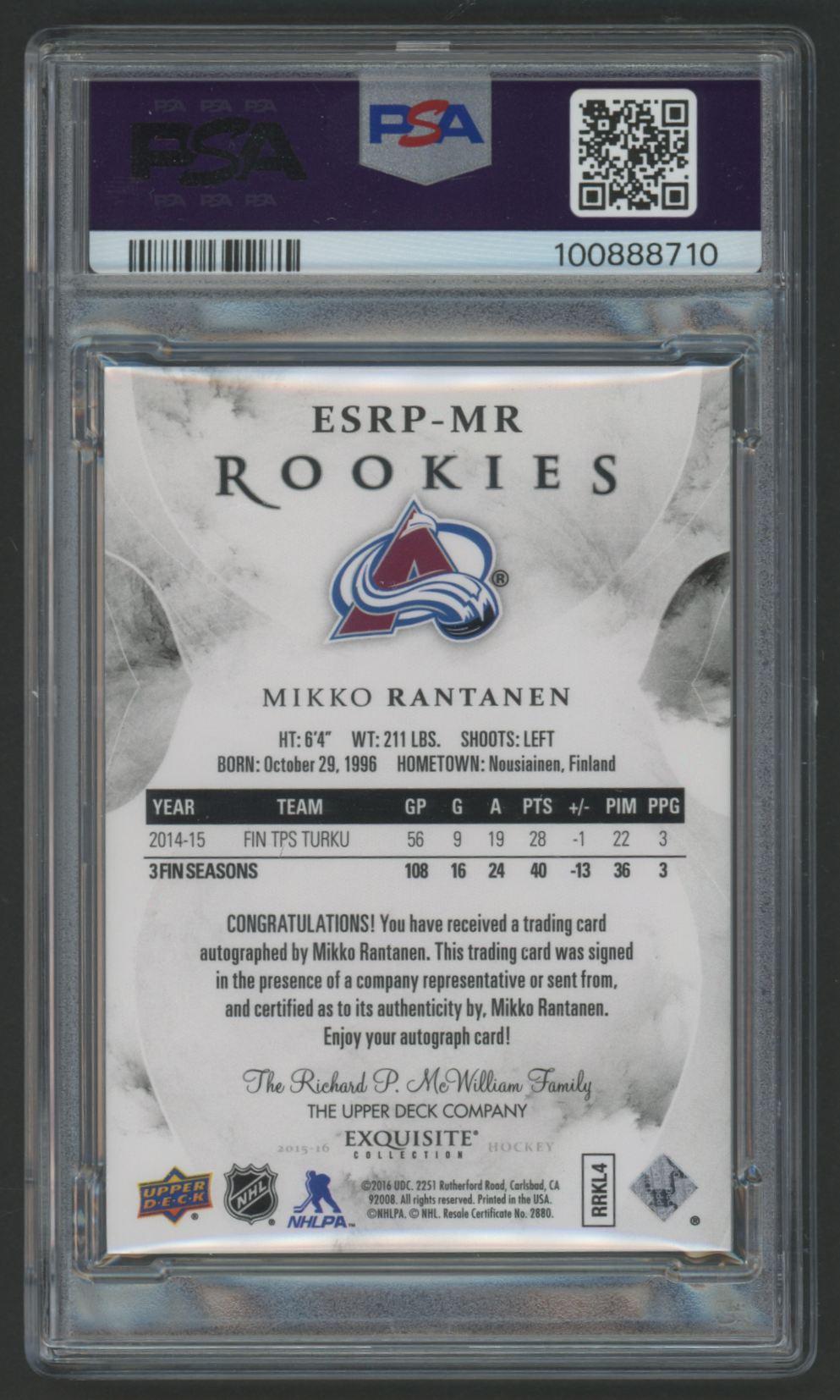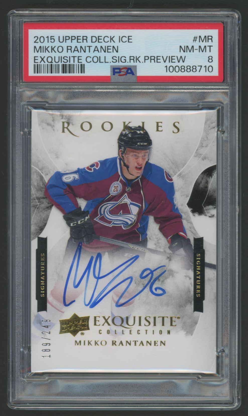 Mikko Rantanen 2015 Upper Deck Ice Exquisite Collection Signature Rookie Preview #MR #189/249 (PSA 8)