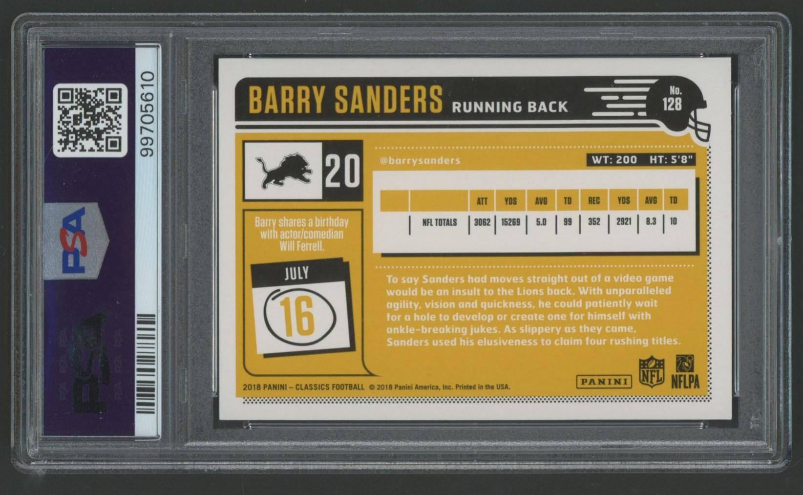 Barry Sanders 2018 Panini Classics #128 (PSA 10)