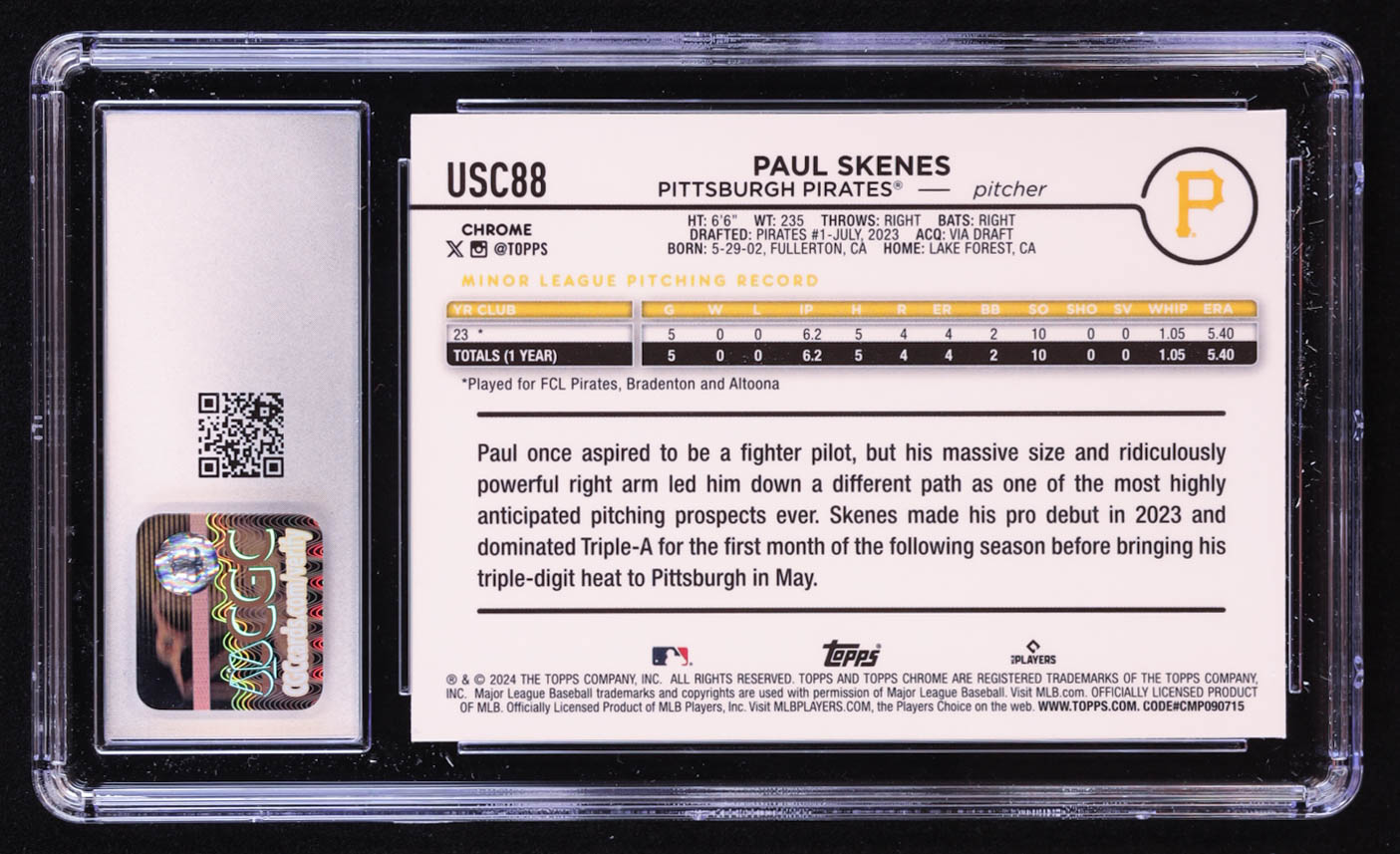 Paul Skenes 2024 Topps Chrome Update #USC88 RC (CGC 10)