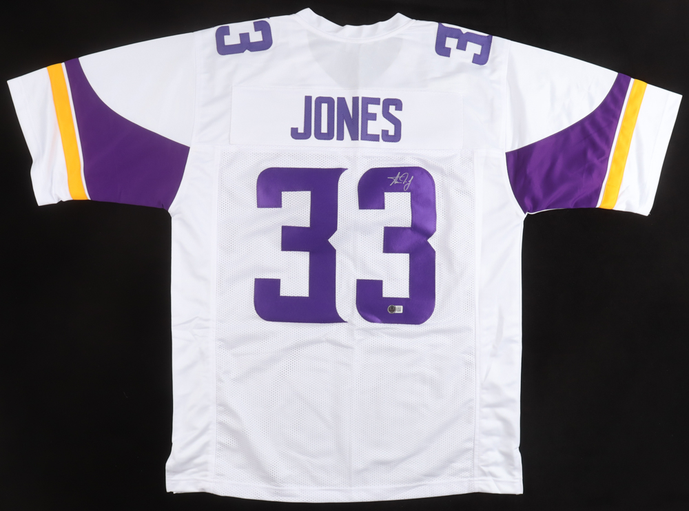 Custom jersey. Everything is sewn on, size XL. Hand-signed by Aaron Jones.