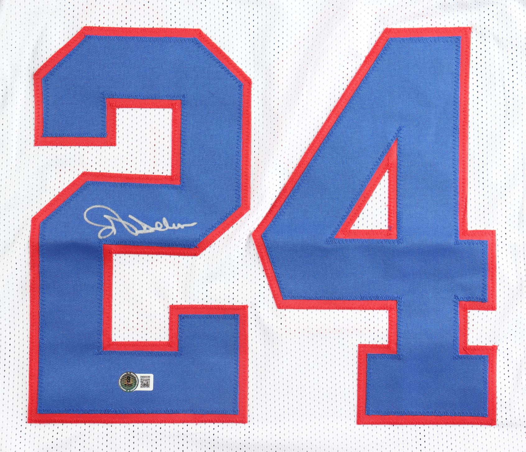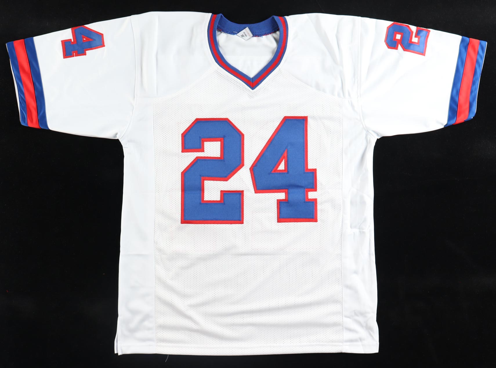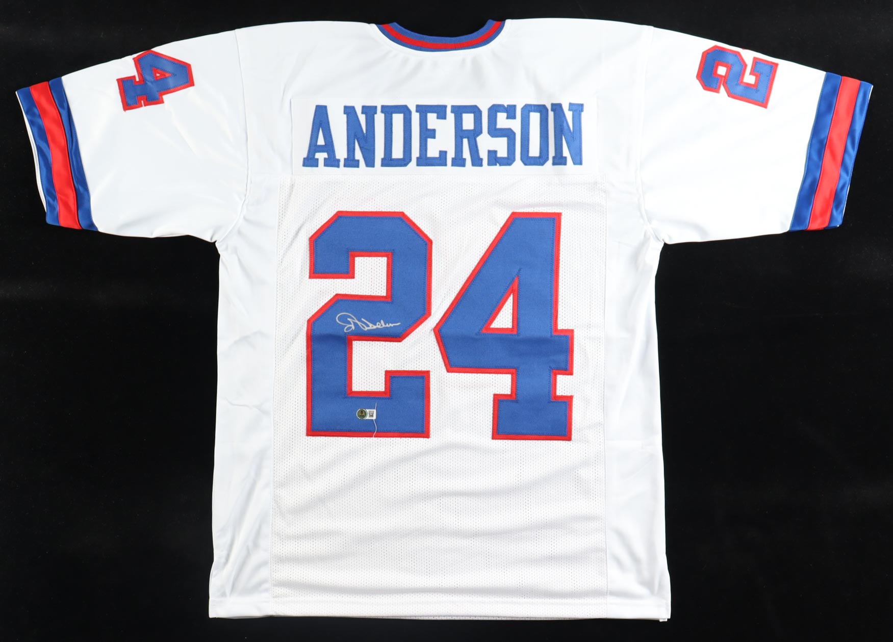 Custom jersey with everything sewn on, size XL. Hand-signed by Ottis Anderson.