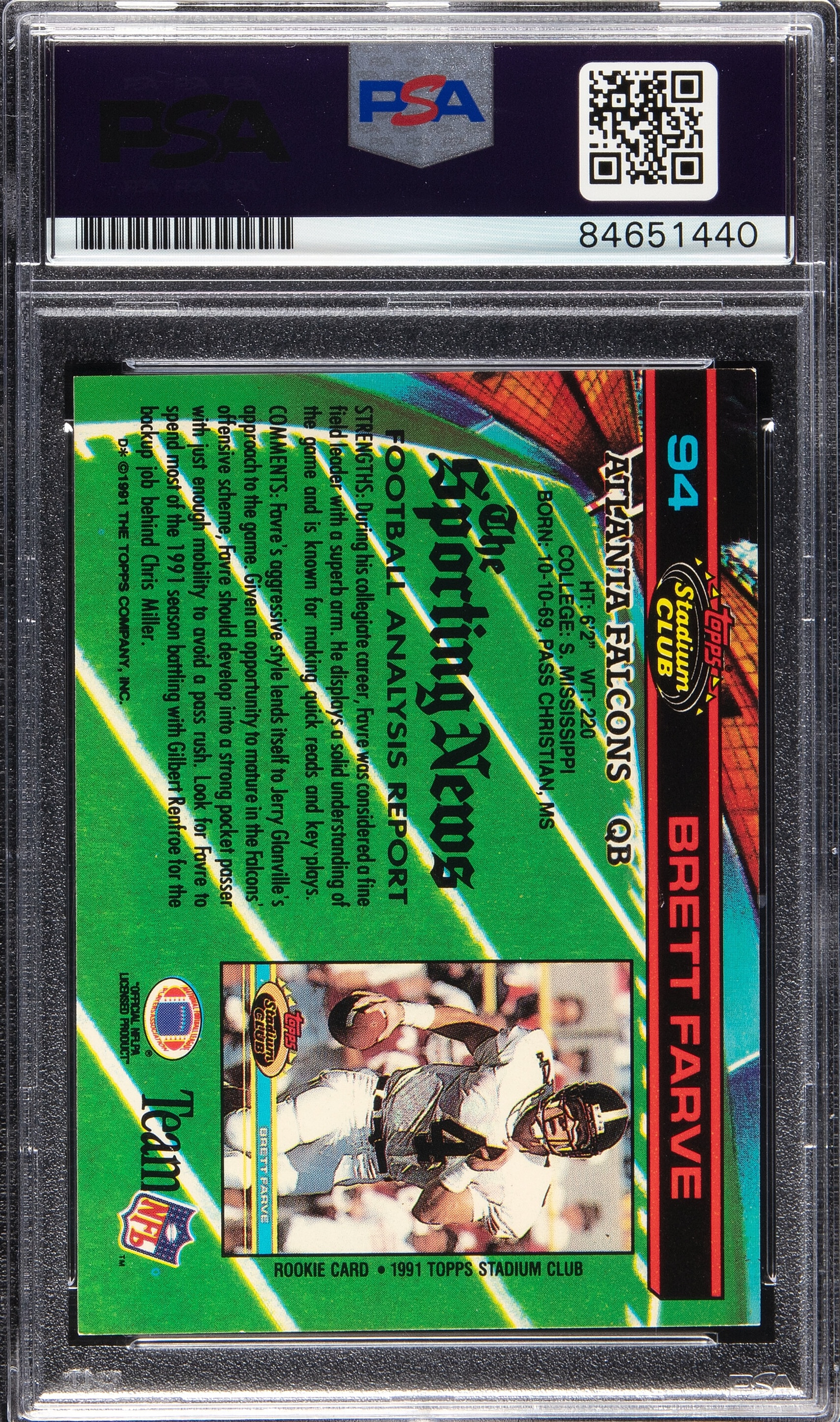 Brett Favre Signed 1991 Stadium Club #94 RC (PSA | Autograph Graded 10)