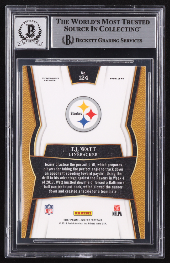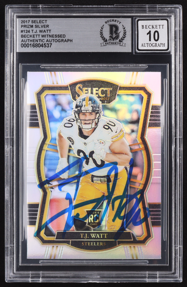 T.J. Watt Signed Signed 2017 Select Prizm Silver #124 RC (BGS | Autograph Graded BGS 10)