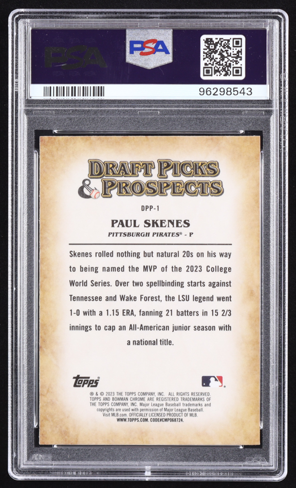 Paul Skenes 2023 Bowman Chrome Draft Draft Picks and Prospects #DPP1 RC (PSA 9)