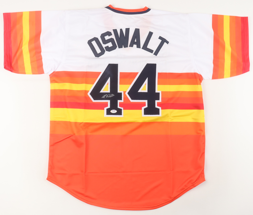 Custom jersey. Everything sewn on, size XL. Hand-signed by Roy Oswalt.