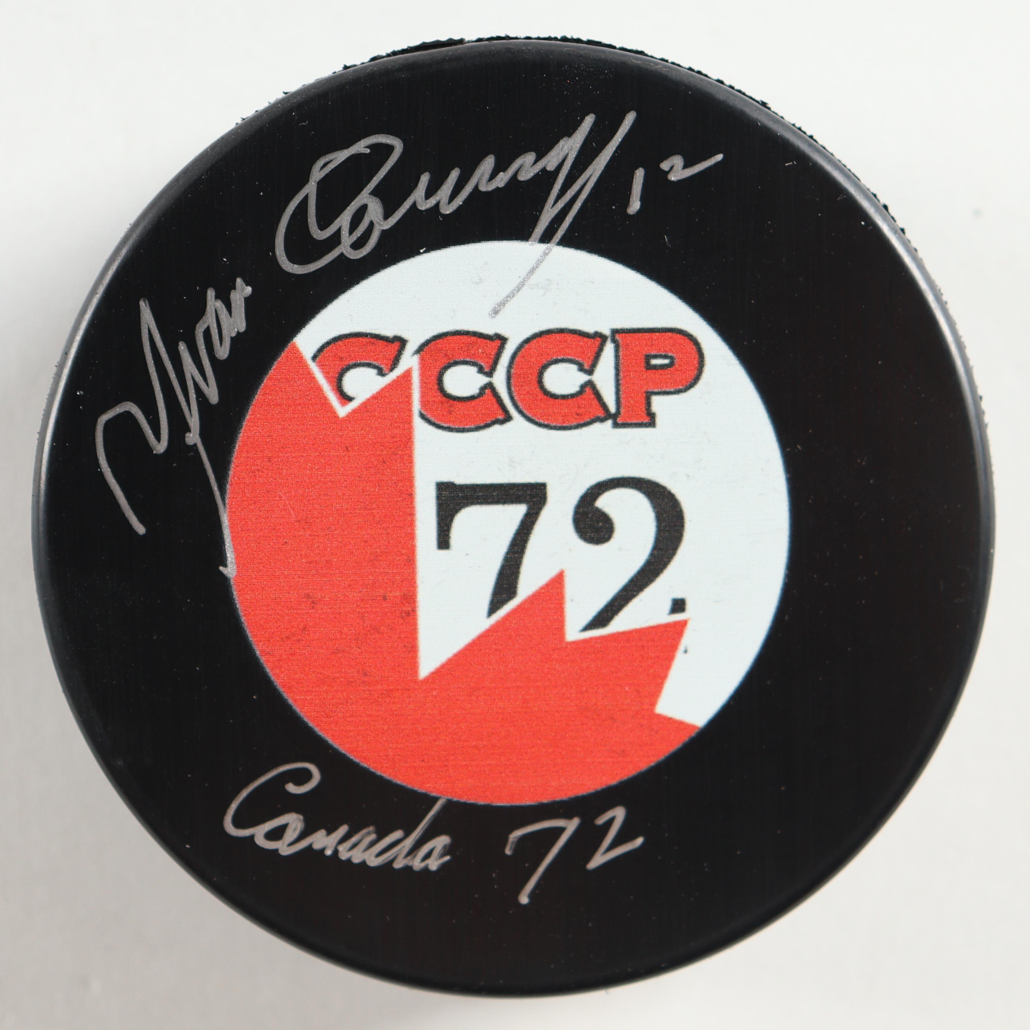 Yvan Cournoyer Signed Summit Series Team Canada Logo Hockey Puck Inscribed "Canada 72" (Premium Autographs)