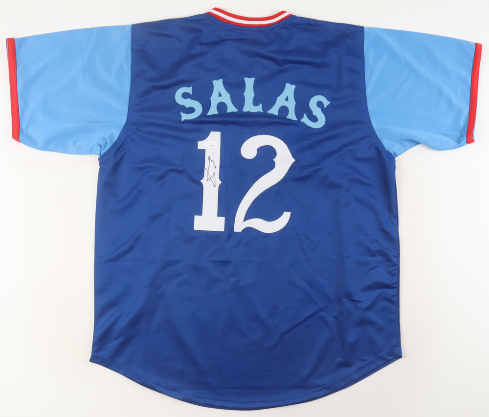 Custom jersey with everything sewn on, size XL. Hand-signed by Ethan Salas.