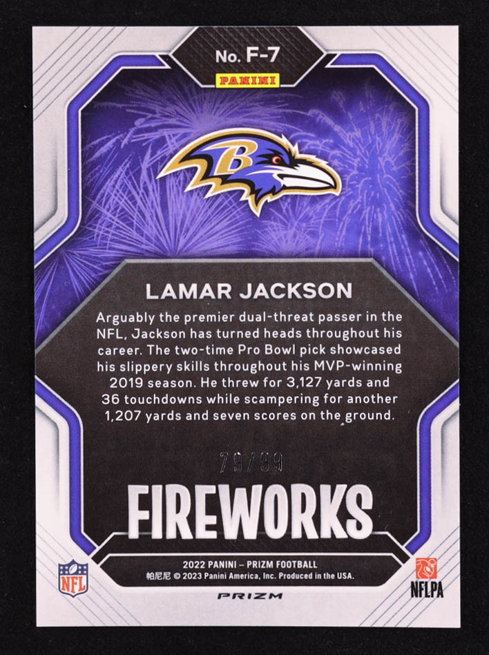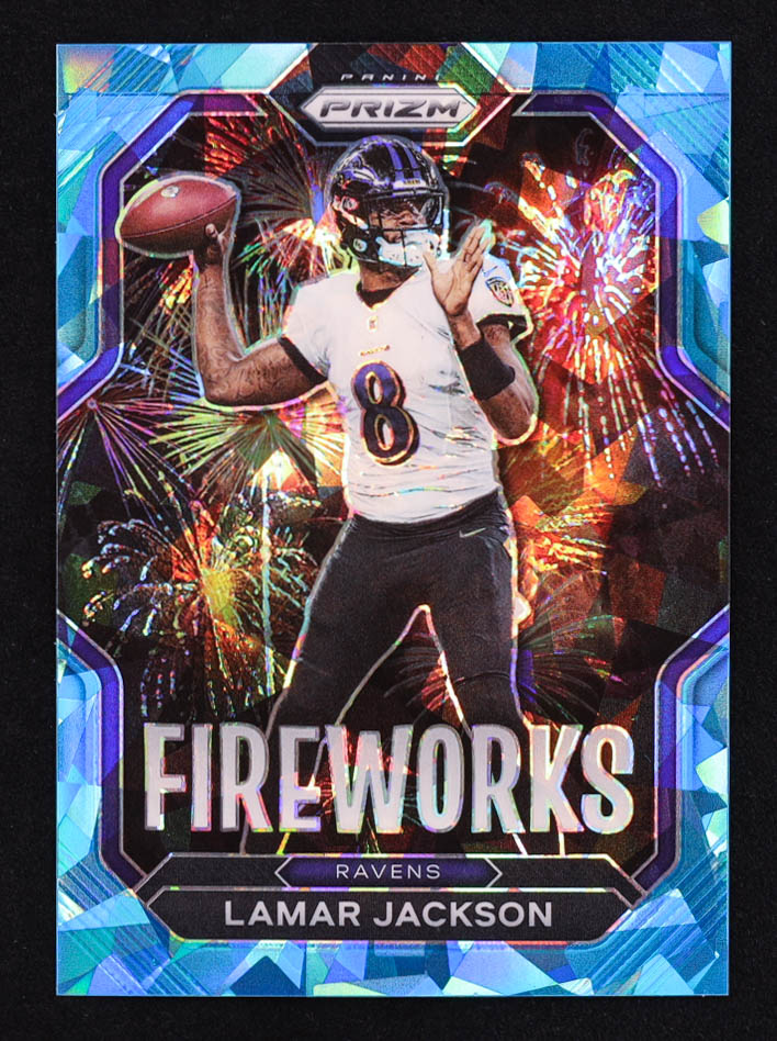 Lamar Jackson 2022 Panini Prizm Fireworks Prizms Blue Ice #7 #79/99