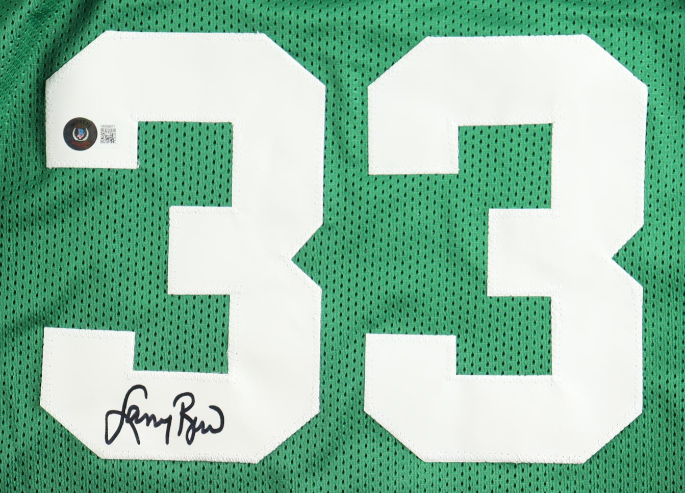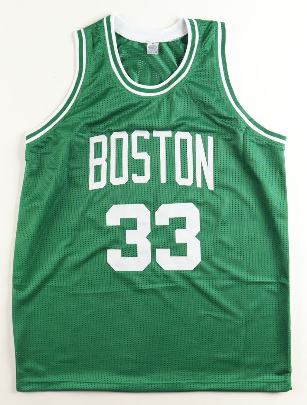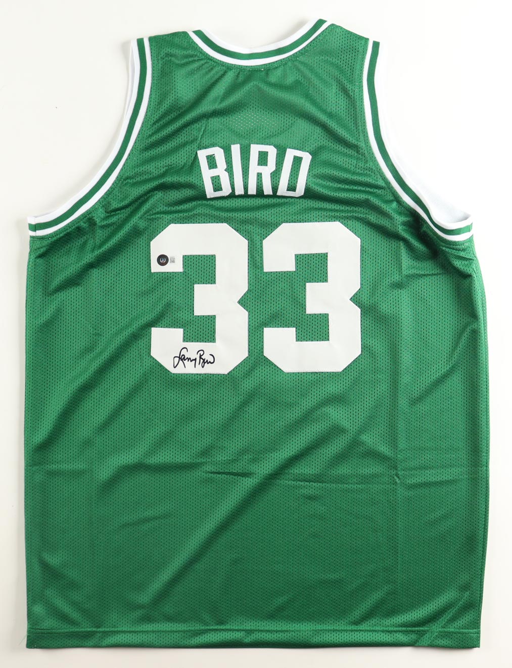 Custom jersey with everything sewn on, size XL. Hand-signed by Larry Bird (HOF).