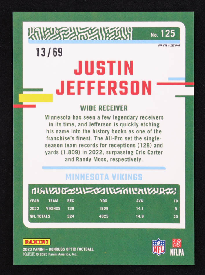 Justin Jefferson 2023 Donruss Optic Electricity #125 #13/69