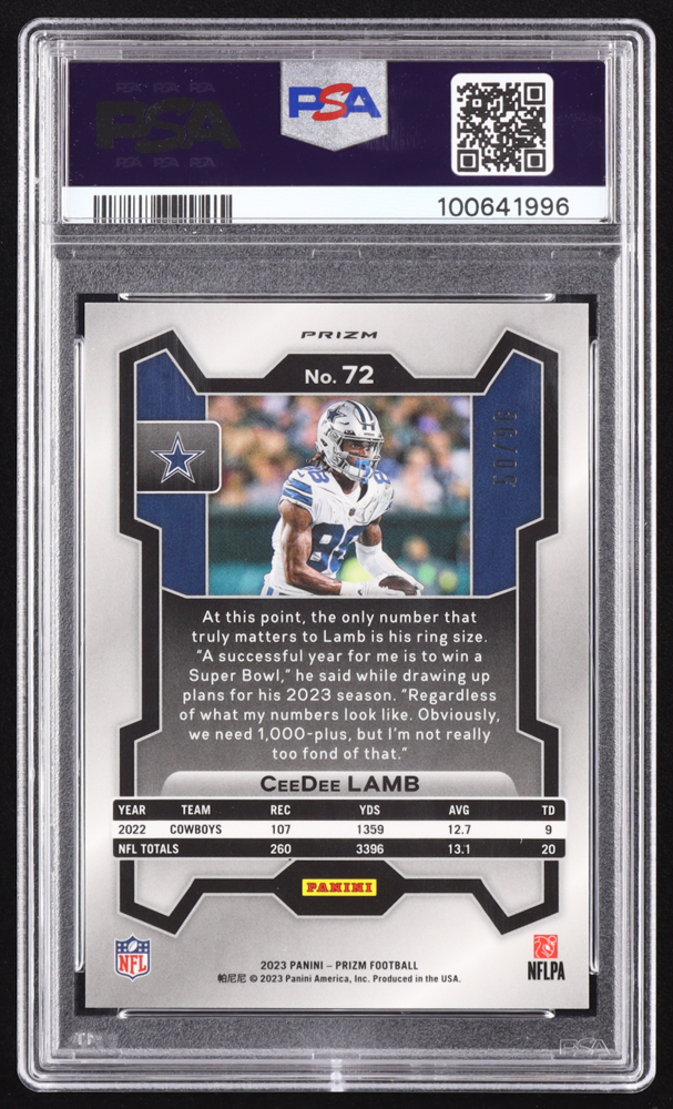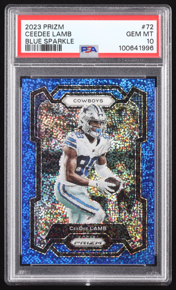 CeeDee Lamb 2023 Panini Prizm Prizms Blue Sparkle #72 #50/96 (PSA 10)