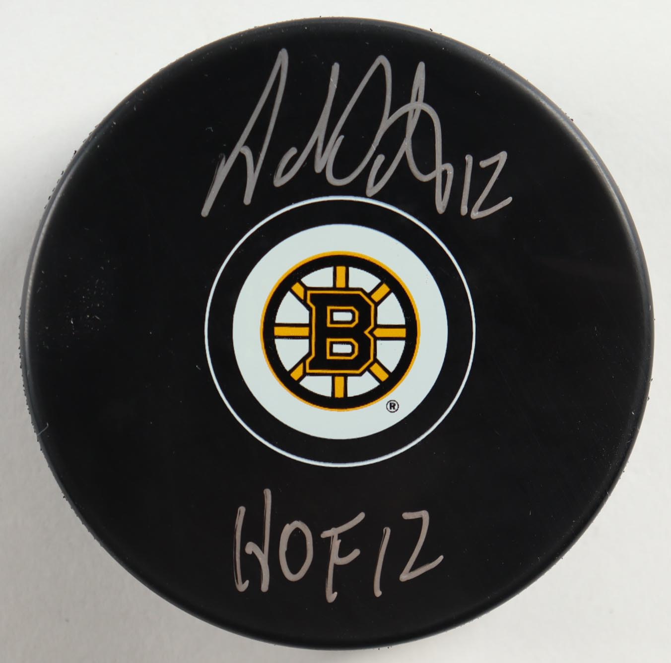 Adam Oates Signed Bruins Logo Hockey Puck Inscribed "HOF 12" (Premium Autographs)