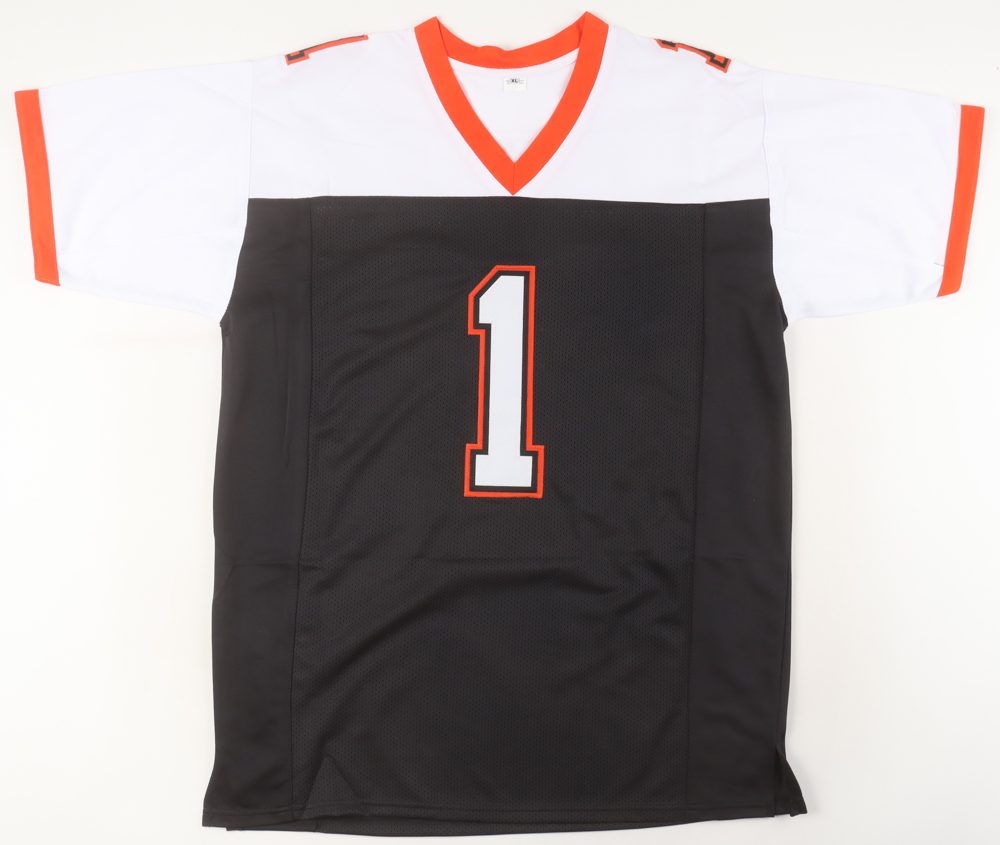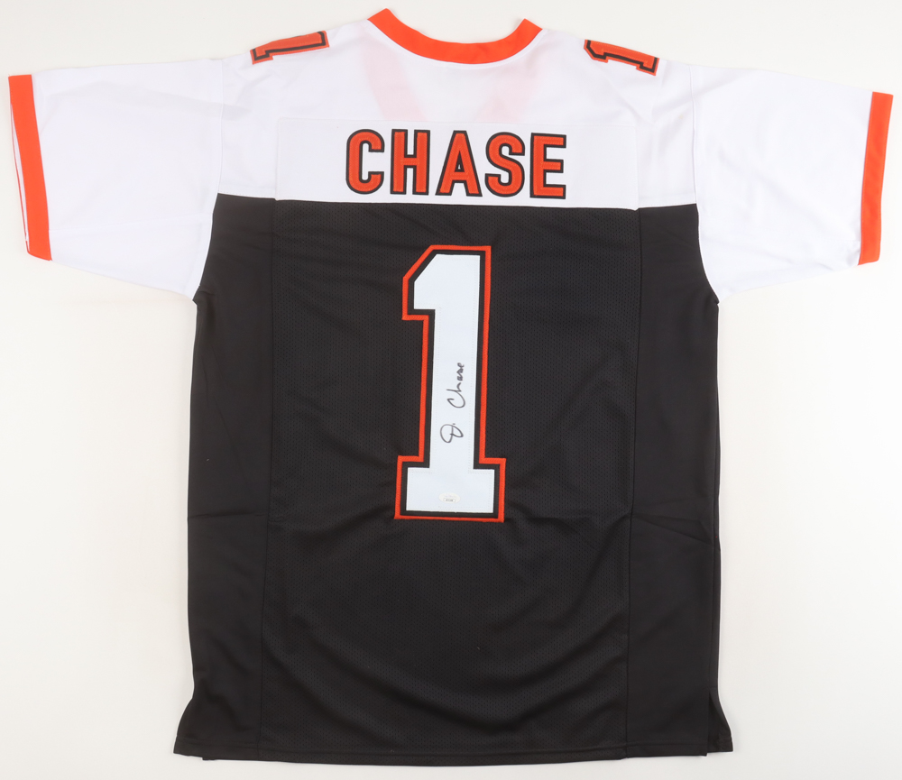 Custom jersey with everything sewn on, size XL. Hand-signed by Ja'Marr Chase.