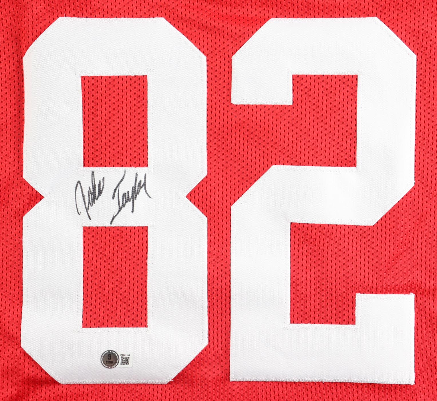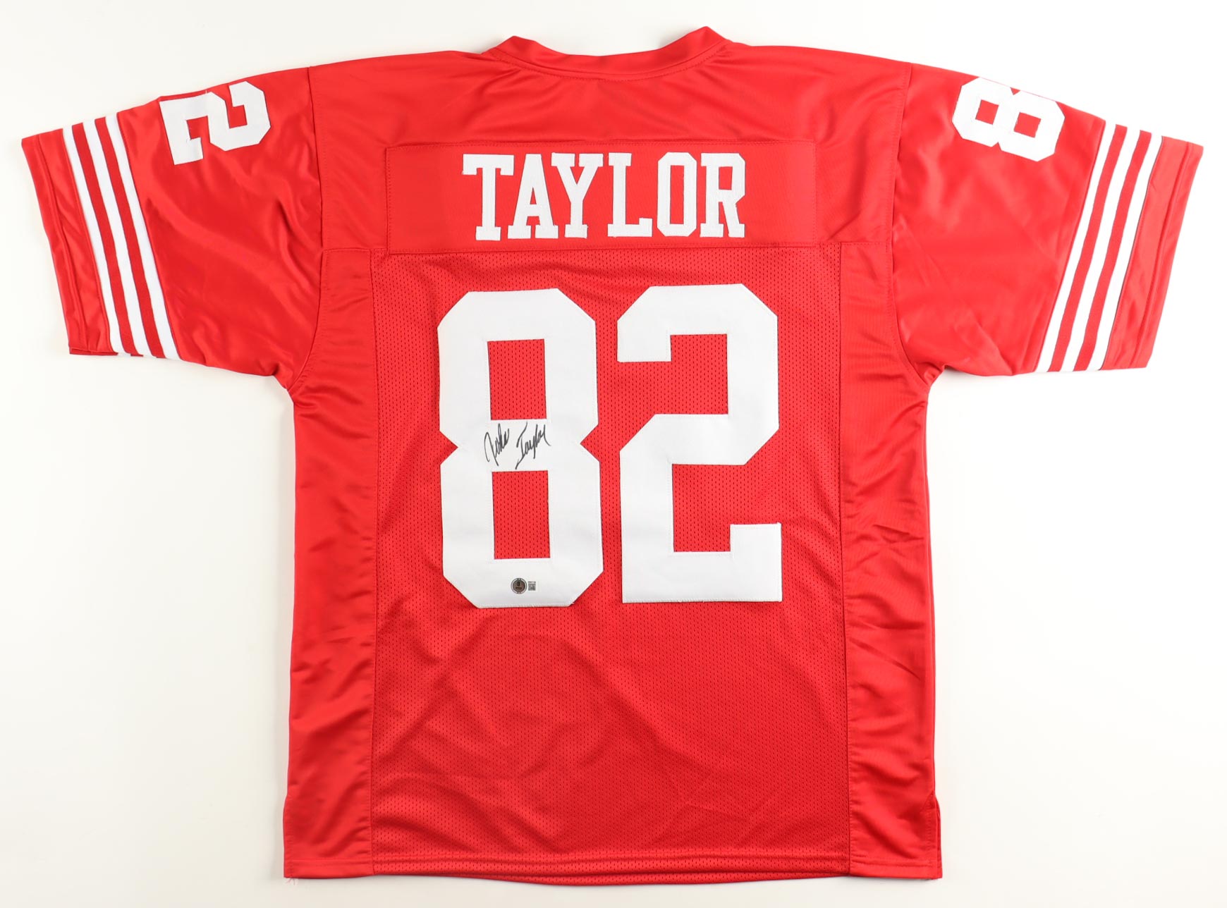 Custom jersey. Everything sewn on, size XL. Hand-signed by John Taylor.