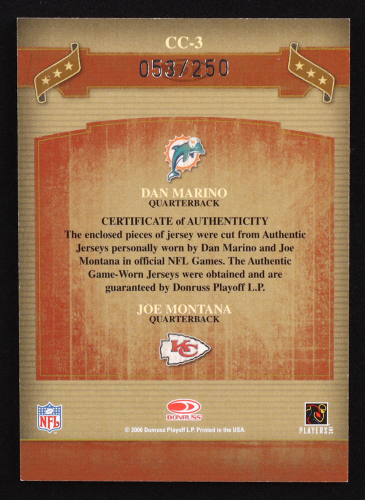 Dan Marino / Joe Montana 2006 Donruss Classics Classic Combos Jerseys #CC3 #53/250