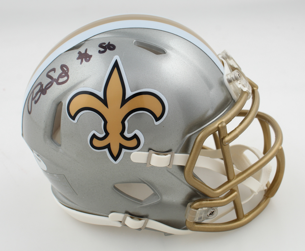 Riddell New Orleans Saints Flash Alternate Speed mini helmet. Hand-signed by Pat Swilling.