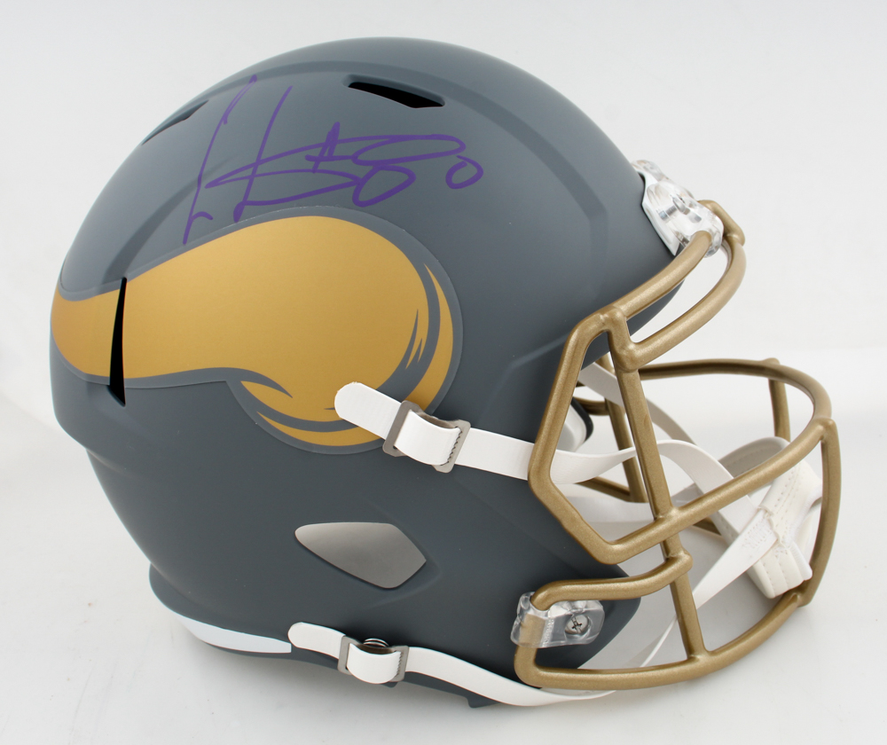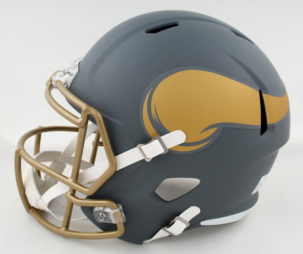 Riddell Minnesota Vikings Full-Size slate alternate speed replica helmet has been hand-signed by Cris Carter (HOF).
