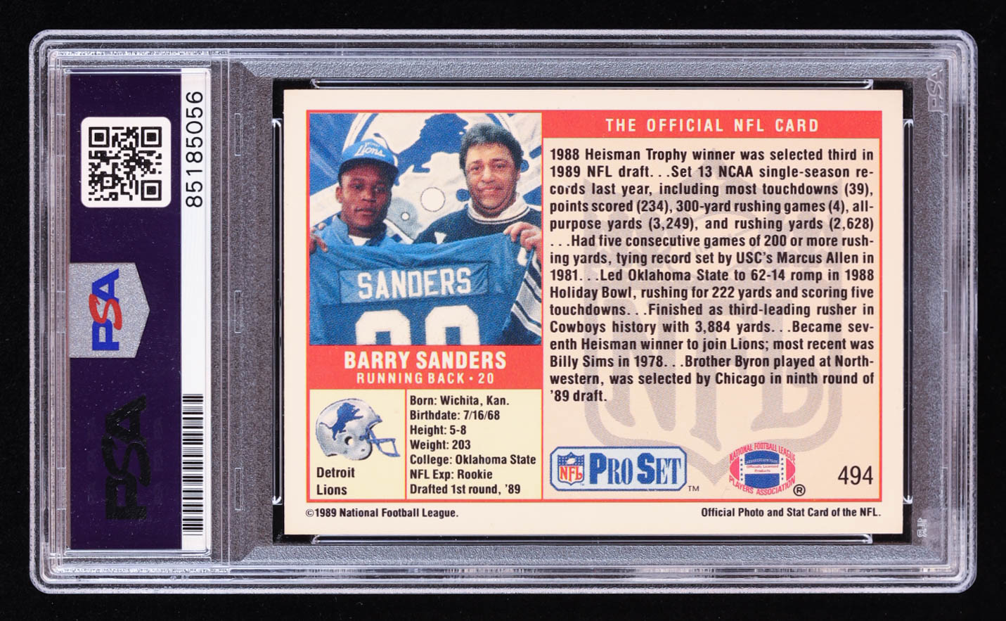 Barry Sanders Signed 1989 Pro Set #494 RC (PSA | Autograph Graded PSA 10)