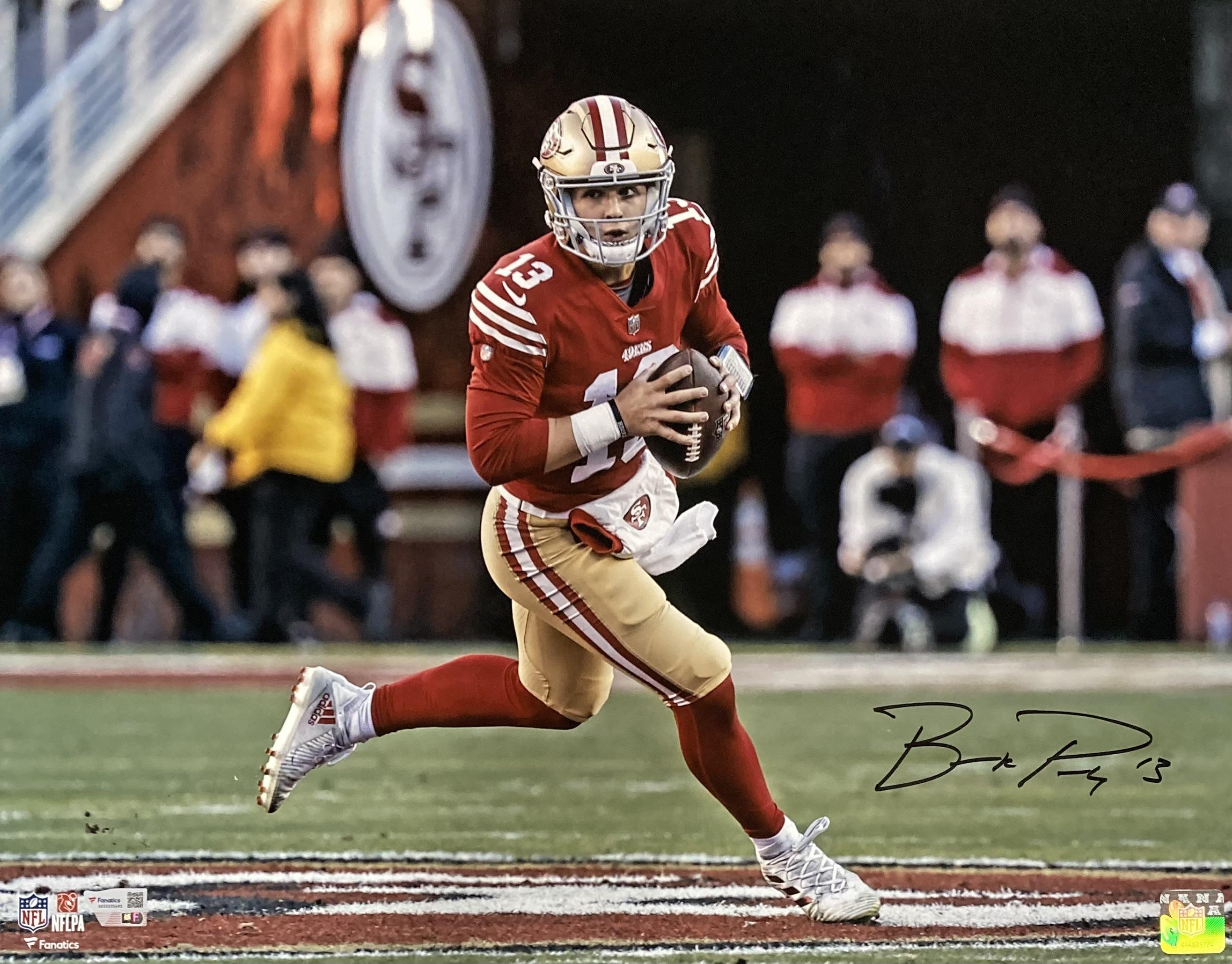 Photo measures 16" x 20" and has been hand-signed by Brock Purdy (San Francisco 49ers).