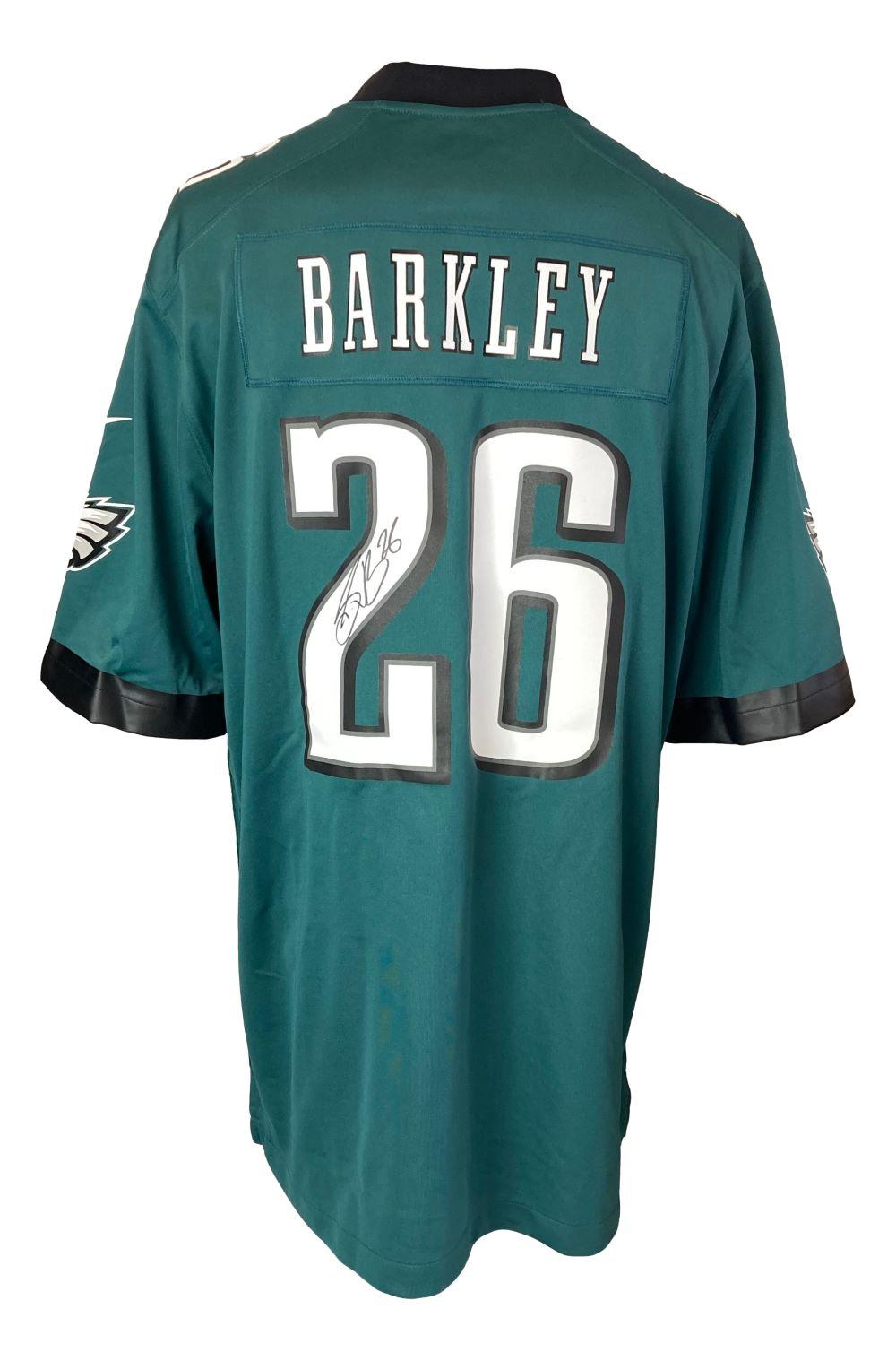 Nike style jersey with everything pressed on, size XL. Hand-signed by Saquon Barkley (Philadelphia Eagles).