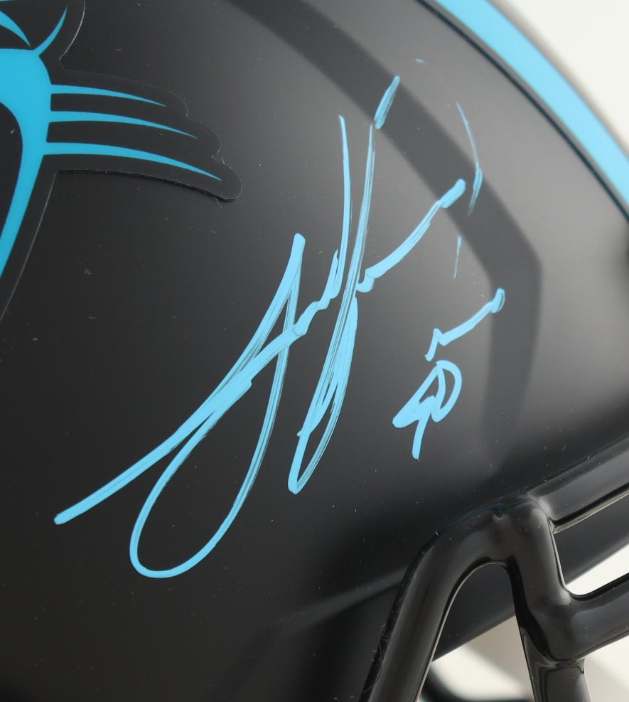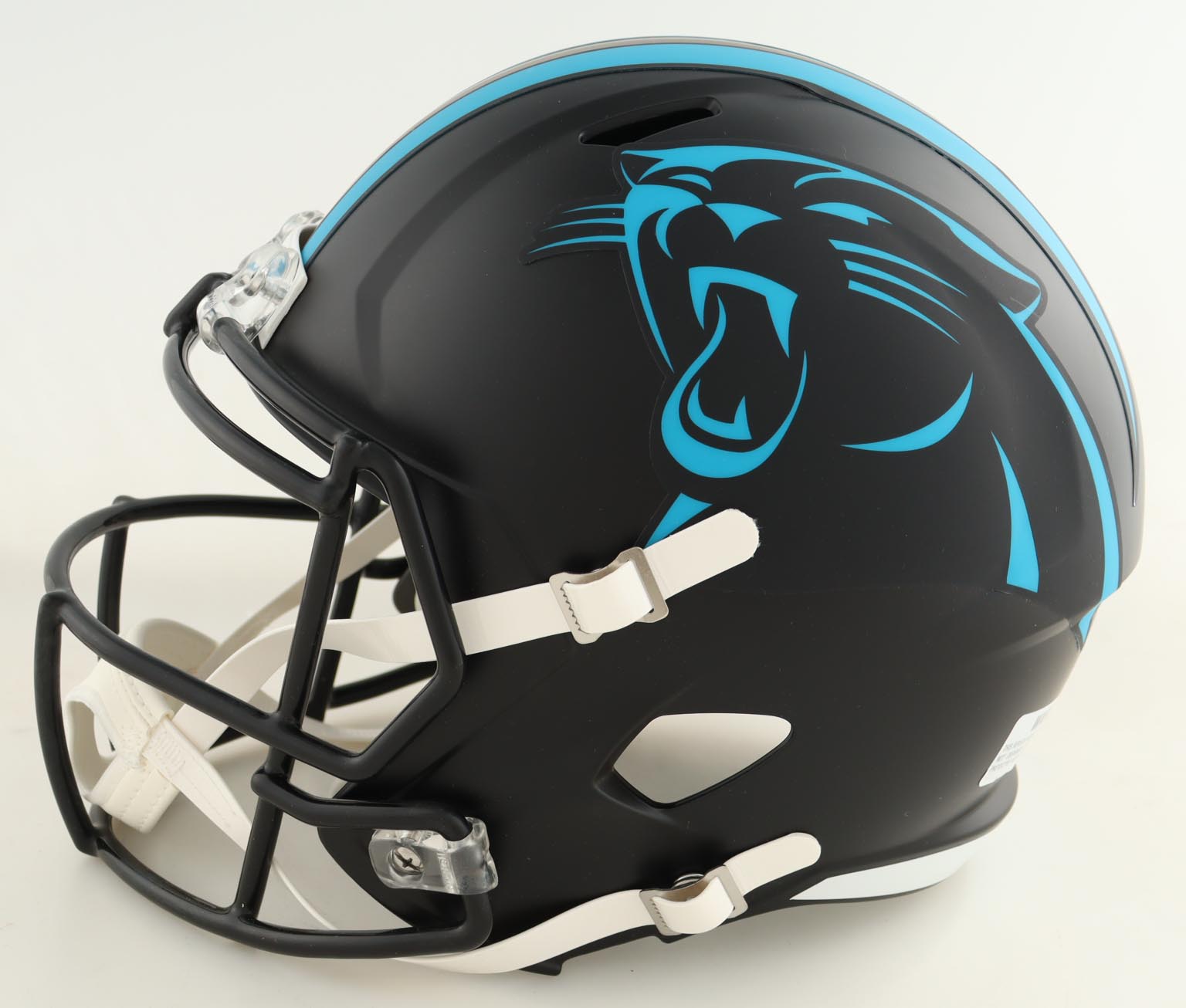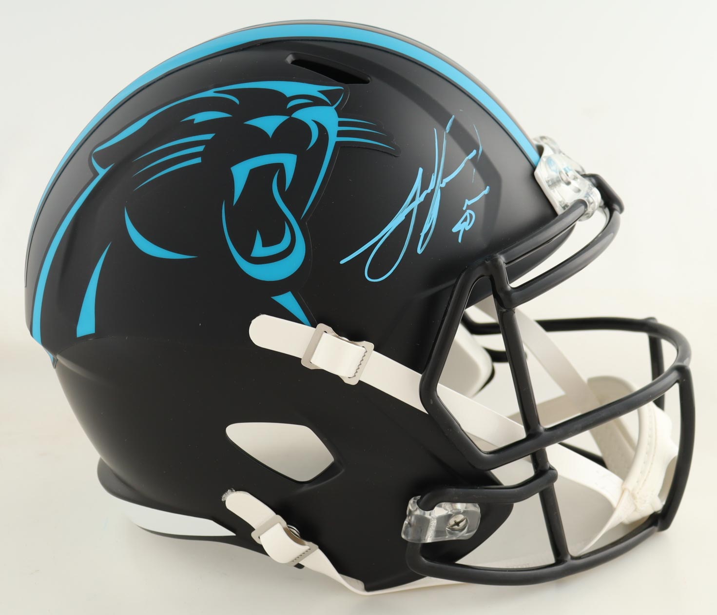 Riddell Carolina Panthers full-size alternate speed replica helmet. Hand-signed by Julius Peppers (HOF).