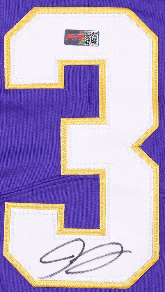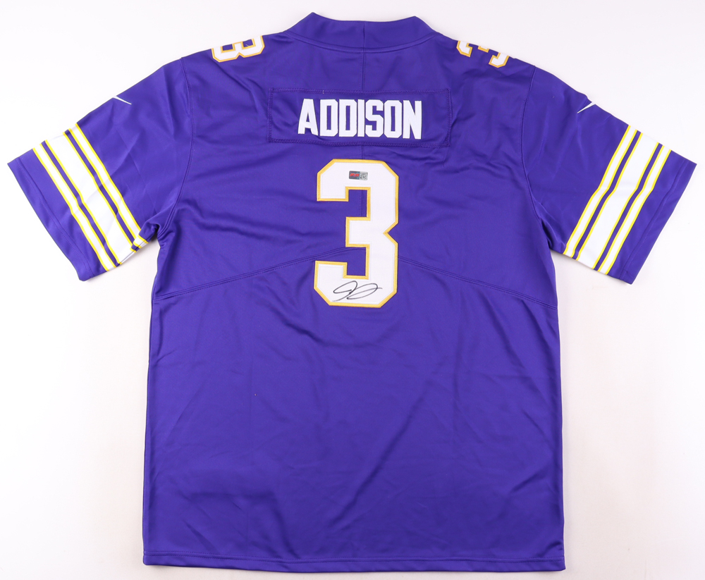 Nike jersey with everything sewn on, size XL. Hand-signed by Jordan Addison.